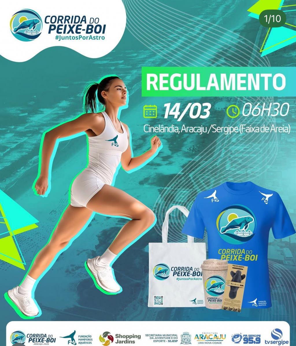 A Praia da Cinelândia recebe neste sábado, dia 14, a 1ª edição da Corrida do Peixe-Boi, evento que promove saúde e busca sensibilizar a sociedade sobre a importância da conservação ambiental costeira. Realizada pela Fundação Mamíferos Aquáticos (FMA), a prova também tem objetivo de arrecadar recursos para o tratamento do peixe-boi Astro, recentemente vítima de atropelamento por embarcação motorizada. A corrida tem apoio logístico da Prefeitura de Aracaju, por meio da Secretaria Municipal da Juventude e do Esporte (Sejesp).