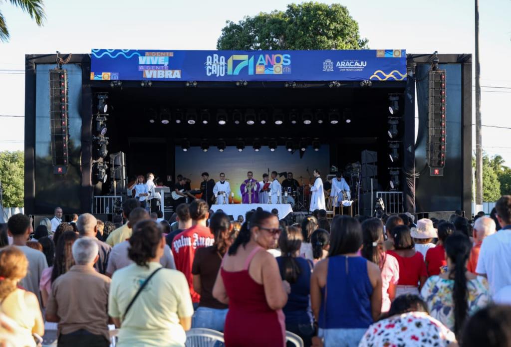 A programação comemorativa pelos 171 anos de Aracaju contou, neste domingo, 22, com um momento especial de fé e espiritualidade. Realizado pela Prefeitura de Aracaju, no Parque Governador Augusto Franco, mais conhecido como Parque da Sementeira, o show católico reuniu artistas da música religiosa e um público expressivo em uma celebração marcada por louvor, oração e evangelização.