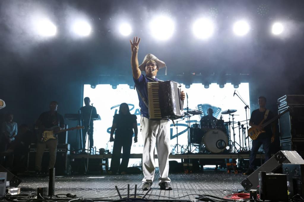 Na sequência, o público acompanhou a apresentação do padre Sandro, conhecido como “o Sanfoneiro”, que levou ao palco um repertório marcado pela evangelização por meio da música.