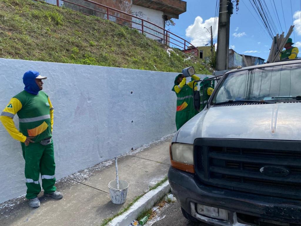 Nesta terça-feira, 24, equipes foram designadas para realizar a pintura de um muro de contenção localizado na avenida Dr. José da Silva Ribeiro Filho, no bairro América. No local, havia pinturas de propagandas irregulares, causando poluição visual para quem circulava pela região.