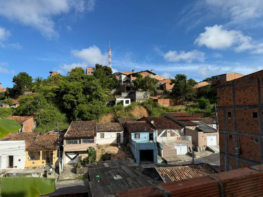 Maria Thamires dos Santos vive na comunidade há uns 35 anos. A residência dela fica ao lado de outras residências onde vivem mais familiares. A preocupação dela, é com a água da chuva que lava o morro, formando uma lama que se acumula no quintal.
