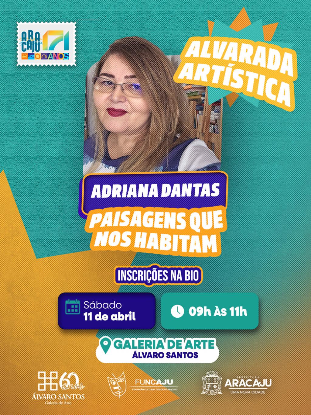 A Prefeitura de Aracaju, por meio da Fundação Cultural Cidade de Aracaju (Funcaju) e da Galeria de Arte Álvaro Santos, realiza no próximo sábado, 11 de abril, às 9h, mais uma edição do projeto Alvarada Artística. As vagas são limitadas e as inscrições são através de formulário online
