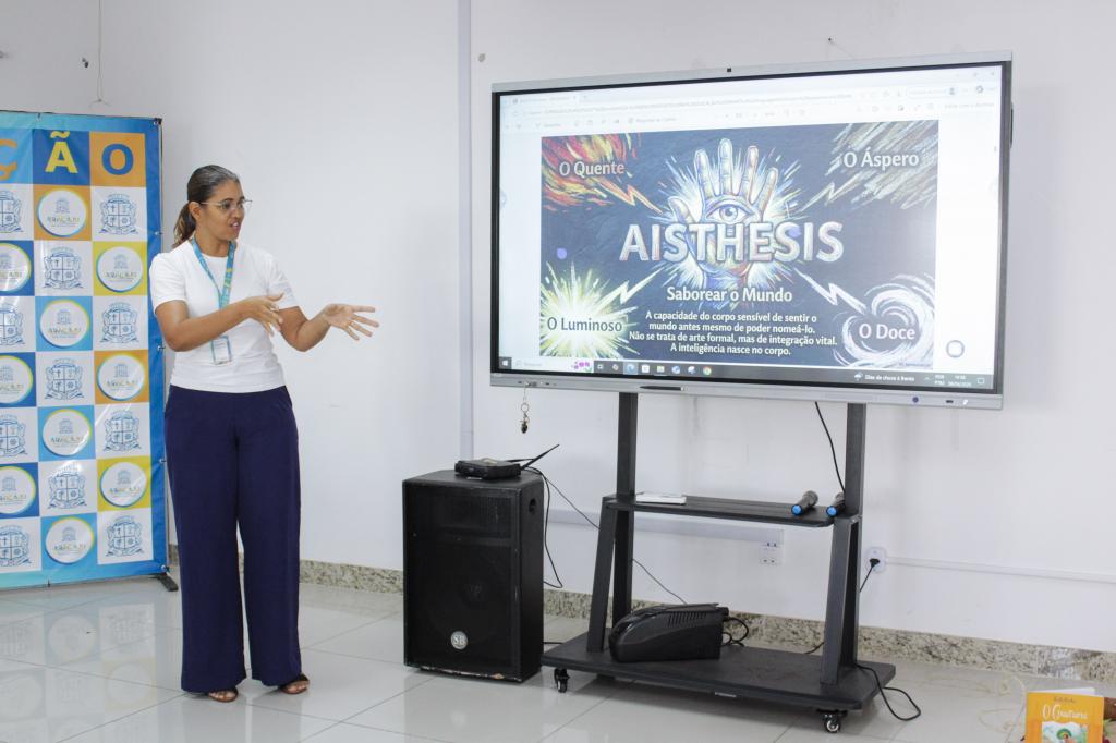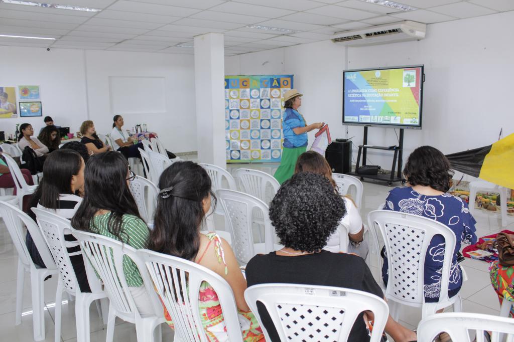 A professora da Escola Professora Rachel Cortes Rollemberg, no bairro José Conrado de Araújo, Anny Karoline Teles, ficou entusiasmada com o tema trabalhado na formação e entende a importância de criar um ambiente que incentive a leitura e a escrita. “É importante dispor de letras e livros no espaço dedicado à leitura, e selecionar brinquedos com objetivos pedagógicos claros, evitando que simplesmente ocupem o espaço. Deve haver momentos específicos para a contação de histórias e a musicalização, todos integrados a uma rotina bem definida”.