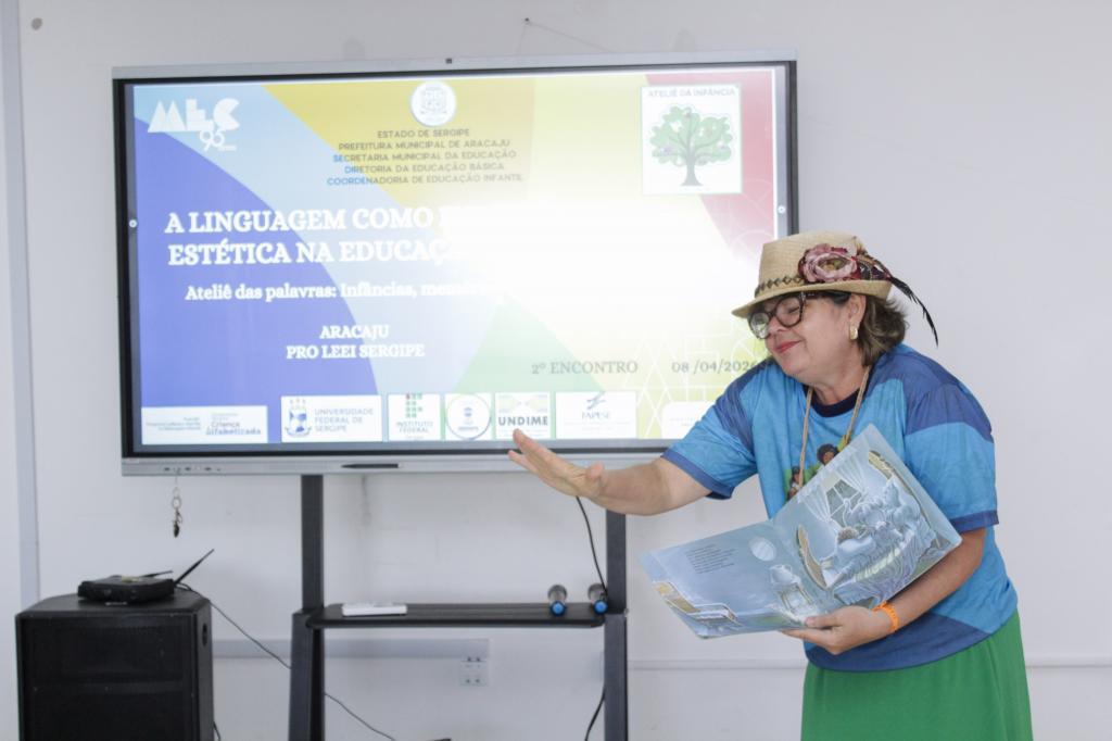 “O encontro visa analisar a relação da criança com as linguagens, como a contação de histórias, a arte e a música, bem como com a diversidade de elementos culturais. Buscamos compreender como essas experiências provocam na criança o encontro com a cultura, expandindo seus conhecimentos e desenvolvendo novas habilidades”, explica a formadora e técnica da Coordenadoria de Educação Infantil, Valéria de Sousa.