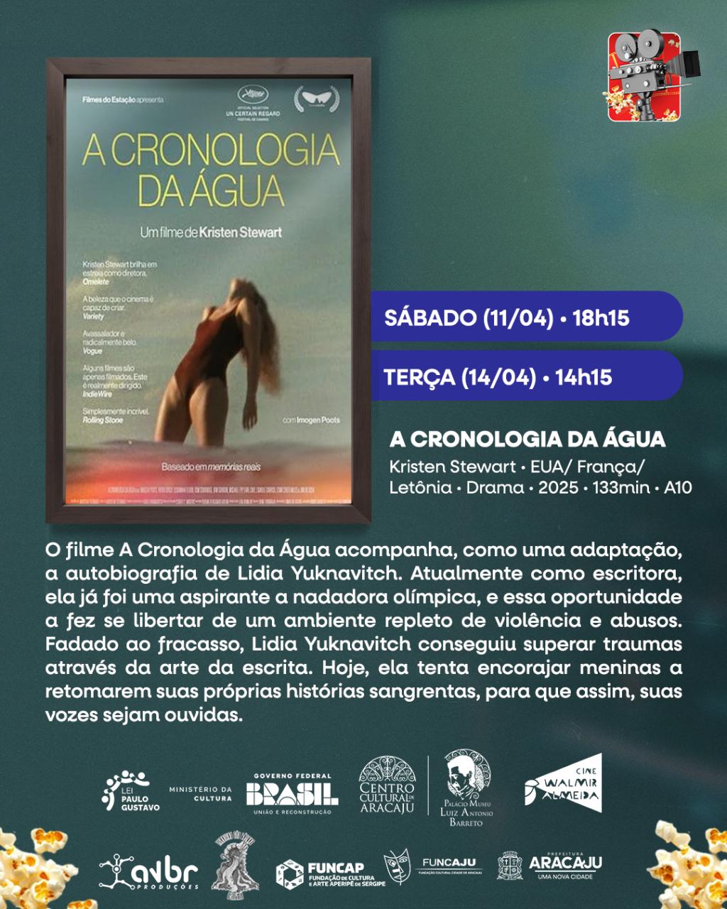 A 'Cronologia da Água', dirigido por Kristen Stewart, é uma adaptação da autobiografia da escritora Lidia Yuknavitch, que narra sua trajetória de superação ao escapar de um ambiente familiar abusivo por meio de uma bolsa de estudos esportiva, caminho que a conduz ao universo da literatura e à construção de sua própria narrativa.