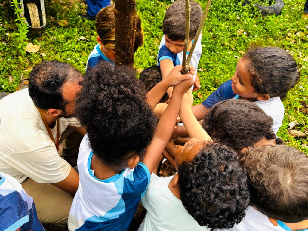 A atividade promoveu o senso coletivo de cuidado com meio ambiente, estimulou a responsabilidade social e o conhecimento de novas espécies.  Igor Azevedo, biólogo do Horto, acompanhou a ação e explicou a escolha das espécies. “Hoje, atendemos a um pedido da direção por mudas com flores, mas conseguimos mesclar também espécies frutíferas. Foram plantados ipês, pitangueiras, aroeiras e mangueiras, combinando árvores que oferecem sombra, flores e frutos, de forma equilibrada para o espaço”.