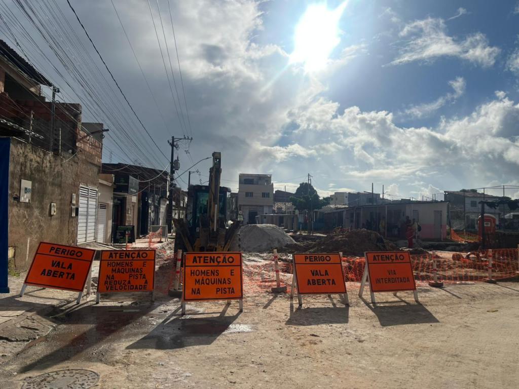 Conforme o corpo técnico de engenharia da Emurb, durante a execução do projeto de infraestrutura foram identificadas interferências nas redes de água e esgoto, o que demandou o remanejamento desses sistemas em alguns trechos para viabilizar a implantação da drenagem e a realização dos serviços de terraplanagem. As adequações foram necessárias para garantir a preservação das redes de abastecimento já existentes e a segurança das intervenções, impactando o ritmo de execução em determinadas etapas da intervenção.