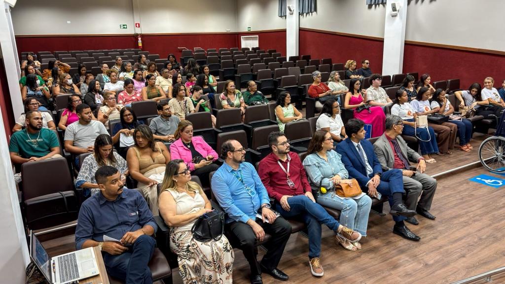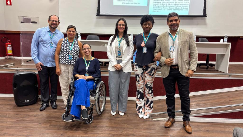 A segunda temática foi “Educação, Inclusão, Família, Rede apoio”, que contou com integrantes da Semed para falar sobre o tema. A Coordenadoria da Educação Especial (Coesp) foi responsável por abordar os processos de monitoramento das pessoas com deficiência na rede municipal, desde documentos como Estudo de Caso, Plano de Atendimento Educacional Especializado (PAEE) e o Plano Educacional Individualizado (PEI), até o acolhimento das famílias e suporte à gestão escolar.