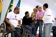 Aracaju deu mais um passo importante para a inclusão social de portadores de deficiência física com a entrega de duas vans para o transporte de cadeirantes, realizada na manhã dessa sexta-feira, dia 2, pelo prefeito Edvaldo Nogueira, no Centro Administrativo Prefeito Aloísio de Campos. Os veículos adaptados integrantes do programa ´Atende´ foram adquiridos pelo município numa parceria entre Prefeitura de Aracaju e Sindicato Empresas de Transportes Urbanos (Setransp). As vans servirão gratuitamente a centenas de deficientes da capital, através da Secretaria Municipal de Assistência Social e Cidadania (Semasc) e da Superintendência Municipal de Transportes e Trânsito (SMTT). “Este é um dia muito especial para a Prefeitura e para todos os que lutam pela inclusão social. É preciso que os cidadãos e o poder público compreendam que numa sociedade democrática não pode haver barreiras entre as pessoas e o aparato oferecido pela ciência e tecnologia deve ser colocado a serviço da comunidade. Não podemos tratar o deficiente como alguém incapaz, mas como alguém que tem o direito de poder desenvolver suas potencialidades de forma plena”, avaliou o prefeito. As vans adaptadas com elevadores elétricos e hidráulicos vão prestar atendimento personalizado a cada cadeirante. Para isso, basta solicitar o agendamento do transporte com 48 horas de antecedência através do telefone (79) 3218-7860. O sistema está em funcionamento desde a última segunda-feira, dia 29 de maio. Quatro cadeirantes, com direito a um acompanhante cada, podem ser transportados por van numa mesma viagem. Os motoristas do serviço são devidamente treinados e o transporte é feito com total segurança. “De fato ainda estamos dando os primeiros passos na inclusão dos deficientes físicos, mas ninguém inicia uma longa caminhada sem dar o primeiro passo. Tudo aquilo que depende do esforço da Prefeitura tem sido feito de forma determinada, porque o deficiente não precisa de piedade, mas de ações concretas. Podem ter certeza de que até o final do nosso governo ainda vamos dar passos muito mais largos neste sentido”, falou Edvaldo Nogueira ao conclamar empresários e sociedade civil organizada para se somarem à causa dos deficientes. O prefeito fez questão também de agradecer à parceria do Setransp e já cobrou do Sindicato o compromisso assumido para que mais duas vans sejam incorporadas ao sistema o mais breve possível. Ele lembrou ainda que a inclusão social de portadores de deficiência, seja ela qual for, tem sido um dos principais focos das realizações da Prefeitura pela cidade desde o início da gestão do ex-prefeito Marcelo Déda. “Ele enquanto prefeito, eu enquanto vice, além de toda nossa equipe, trabalhamos muito para que pudéssemos vivenciar este momento hoje”, contou. A Prefeitura de Aracaju já reconstruiu quatro de seus terminais de ônibus e, em todos eles, a preocupação com os deficientes é marcante. Rampas de acesso, piso tátil e placas com as rotas de ônibus em Braille são algumas das novidades já implementadas pela administração nos terminais de integração da Zona Oeste (que será inaugurado em breve), e nos terminais do Centro, Santos Dumont e Atalaia, todos já em pleno funcionamento. “Estamos caminhando para a acessibilidade e liberdade dos cadeirantes. Quando a gente respeita a diferença, aí sim começa a cidadania”, frisou o presidente do Conselho Municipal de Portadores de Deficiência, Dilton Jorge. De acordo com Edvaldo Nogueira, a busca pela concretização da licitação dos transportes coletivos na capital vai incluir como item fundamental a adaptação de 40% da frota de ônibus para os deficientes. “Este será um processo um pouco lento, porque envolve também as prefeituras de Socorro e São Cristóvão, além do Governo do Estado. A licitação não pode ser feita só em Aracaju para não prejudicar os passageiros de outras cidades, mas nós vamos continuar trabalhando para que ela aconteça o quanto antes”, destacou o prefeito. O presidente da Fraternidade Cristã de Doentes e Deficientes, José Renato Freitas, foi o primeiro a testar o serviço de transporte logo depois da entrega das chaves à secretária de Assistência Social e Cidadania, Rosária Rabelo. Participaram ainda da solenidade o presidente do Conselho Estadual de Portadores de Deficiência, Cláudio de Brito, o superintendente do Setransp, José Amâncio, além de diversos secretários municipais e cadeirantes da capital.