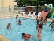 A manhã de hoje é de alegria e muita diversão para 32 crianças e adolescentes atendidos pela Secretaria Municipal de Assistência Social e Cidadania (Semasc), por meio do Programa de Erradicação do Trabalho Infantil (Peti). A garotada vivenciou um dia diferente no balneário do Sesc, na Atalaia, onde aproveitaram para brincar e tomar banho de piscina. As atividades proporcionadas para as crianças e os adolescentes fazem parte de um Projeto Resgate dos jogos de recreação, criado pelo recreador do Sesc, André Santana, com o intuito de desenvolver atividades recreativas com crianças e adolescentes atendidos por programas sociais na capital sergipana. As crianças e adolescentes não descansaram um segundo. Entre as brincadeiras, como dança da cadeira, criação de histórias, dinâmicas em grupo, a piscina foi o espaço mais atrativo para garotada. Ali eles puderam se deliciar com um ótimo banho depois de passar pelos toboáguas. Para a estagiária Daniella Araújo Guimarães, que acompanhou a garotada no passeio, essas atividades são muito importantes para o desenvolvimento dessas crianças e adolescentes. É de suma importância porque eles têm uma realidade social difícil, com vários problemas. E quando eles participam de uma atividade como essa, vislumbram outros horizontes e outras realidades possíveis para o seu futuro, complementa. Além de que está potencializando sua criatividade, o trabalho em equipe e promovendo a sua cidadania, observa Daniella. A adolescente Ana Carla, 15, revela que estava ansiosa esperando por esse dia. Eu já estava esperando muito por esse dia. É muito legal esse passeio porque é a primeira vez que venho aqui. Estou aproveitando e brincando muito, diz a adolescente que está participando do Programa há 2 anos. O Projeto está me dando muita oportunidade. Antes eu não fazia nada além de ir para a escola. Agora tenho mais atividade já que passo a manhã no Programa onde adquiro muito conhecimento, diz. Jéferson Santos da Costa, 9, é outra criança que adorou o passeio. Estou me divertindo muito. As brincadeiras são muito legais e eu adoro a piscina e aqui eu vou poder tomar banho, comentou Jéferson, assim que chegou no Clube. É por isso que o Programa é bom. A gente passeia, se diverte e aprende muitas coisas. Antes de entrar no Programa eu só ficava em casa sem fazer nada e agora vou ao Programa e aprendo a pintar, desenhar e outras coisas, revela Jéferson que está há um ano no Programa. A educadora social Adailza Neres Santos, que também acompanhou as crianças e os adolescentes, conhece bem da realidade dessa garotada. Foi muito bom esse passeio porque tem crianças que estão realizando um sonho, que é tomar banho de piscina. E aqui estamos dando essa oportunidade para eles. Aqui eles estão conhecendo outro ambiente e isso eleva bastante a auto-estima dessas crianças e adolescentes, afirma. As crianças e adolescentes que participaram das atividades recreativas são atendidas pelo Programa de Erradiacação do Trabalho Infantil (Peti) desenvolvido no bairro Santa Maria, no Núcleo do Peti Paraíso do Sul. Naquela unidade, o grupo participa de atividades pedagógicas nas oficinas sócio-educativas.