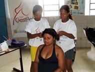 O clima é de descontração e de muita atenção aos conhecimentos que são transmitidos pelos instrutores para as 56 gestantes inclusas no Projeto GestAção, desenvolvido pela Secretaria Municipal de Assistência Social e Cidadania (Semasc) em parceria com o Instituto Gbarbosa. Elas vislumbram novas oportunidades de inserção no mercado de trabalho, com o propósito de vencer barreiras, principalmente na fase da gestação, quando elas enfrentam muitos entraves, que até inviabilizam a formação profissional. Mas o projeto quebrou estes empecilhos, e as gestantes, que são beneficiárias do Programa Bolsa Família, já dão os primeiros passos para uma autonomia financeira, participando do curso de cabeleireiro. As aulas foram iniciadas no dia 4 deste mês e as gestantes já estão sentindo efeitos positivos em seu cotidiano. O curso vem sendo realizado no Centro de Referência de Assistência Social João Oliveira Sobral, bairro Santos Dumont, onde a maioria dessas gestantes reside, com aulas ministradas pelo instrutor Gilvan dos Santos. O curso está dividido em quatro módulos para que as alunas tenham todas as noções teóricas e práticas. O primeiro módulo, que está sendo aplicado com as alunas no momento, oferece todas as noções sobre a rotina de um salão de beleza profissional, destacando as especificidades dos variados tipos de cabelos, de cortes e de outras técnicas, além de ensinar algumas normas básicas de relações humanas. O segundo módulo, a ser desenvolvido posteriormente, será preenchido com a prática de corte e o terceiro módulo será mais avançado, com as aulas que permitirão acesso ao conhecimento sobre algumas doenças do couro cabeludo, sensibilização e como proceder para o tratamento. No último módulo, as alunas vão se aprofundar em tipos de cores, penteados e maquiagem. Surpresas As gestantes não escondem a satisfação em participar do projeto. No oitavo mês de gestação, Tâmara Maria da Silva Santos, 19, já demonstra habilidades para a profissão que pretende abraçar. Esse curso é uma maravilha. Estou me interessando muito porque estou pensando no meu futuro e sonho em ter uma autonomia financeira, comenta. Sempre tinha vontade, mas nunca pude fazer esse curso e agora estou tendo esta oportunidade, confessa Tâmara, que já está prestes a ter seu segundo filho. Mesmo quando meu filho nascer, eu venho para cá porque o Projeto incentiva tanto a gente que podemos continuar no curso depois de ter o filho e eu não vou perder essa oportunidade, diz ela. Ana Paula Santos, 31, está grávida de seis meses e é outra aluna exemplar que encantou o professor pela sua vontade de aprender, apesar de não saber ler. Nas aulas teóricas, como eu não sei ler, eu decoro e consigo entender tudo. Isso é uma barreira, mas eu tenho vontade de aprender. Eu sonho em trabalhar na minha casa e ganhar o meu dinheiro, confessa Ana. Realizar um sonho de uma profissão e de uma independência financeira é a meta dessas gestantes. Antes eu não me imaginava fazendo isso e agora já faço, o que é uma oportunidade muito feliz para todas nós que sempre sonhamos com uma profissão, observa. O curso ajuda muito a gente porque nós aprendemos numa fase muito delicada, que é a gravidez, mas aqui a gente se sente útil e aumenta nossa auto-estima e a gente fica até mais bonita, diz Elissandra Santos de Araújo, 30, grávida de dois meses. Rosenildes Oliveira dos Santos, 25, é outra gestante que está participando do curso e não mede elogios a esse trabalho realizado pela Semasc e pelo Instituto G. Barbosa. Nós estamos tendo a oportunidade de mostrar nosso talento. Além disso, ocupamos a mente aqui e aprendemos uma profissão. Eu pretendo investir nessa profissão. Não é fácil, mas tenho vontade e estou aprendendo graças a esse trabalho do Projeto, afirma. Para o instrutor Gilvan dos Santos, o curso oferece todos os detalhes para as futuras profissionais. Elas terão a oportunidade aqui de aprender todas as técnicas e eu já estou percebendo que o curso já está proveitoso porque muitas delas aproveitam as aulas e já estão mostrando seus talentos durante as aulas práticas, comenta. Eu confesso que me surpreendi com algumas delas, observa.