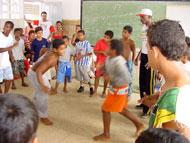 A Secretaria Municipal de Assistência Social (Semasc) mostrou aos moradores do bairro Santa Maria, neste último sábado, 16, o trabalho que o Projeto Criança Cidadã vem desenvolvendo com os adolescentes dessa comunidade através das oficinas sócio-educativas desenvolvidas no Centro de Referência de Assistência Social à Criança, ao Adolescente e à Família Professor Gonçalo Rollemberg Leite, no bairro José Conrado de Araújo. A roda da capoeira foi uma das apresentações feitas pelos adolescentes atendidos pela Semasc, que chamou a atenção de todos que foram à rua prestigiar o Projeto Cidade Viva no último sábado. Na rua, 15 adolescentes do Projeto Criança Cidadã dançaram com a apresentação do maculelê, mostrando a arte da capoeira e seus talentos para a sua comunidade. O adolescente Fabrício dos Santos Gomes, 16, foi um dos adolescentes que se apresentou e está há seis no Projeto. Comovido, ele demonstra a satisfação de participar desse trabalho que vem sendo feito no seu bairro pela Prefeitura de Aracaju e que muitos ainda não tinham tido a oportunidade de conhecer. O Projeto é muito bom e aqui a gente está mostrando isso porque muitos daqui não conhecem, observa o adolescente. Eu estou adorando estar me apresentando aqui e posso dizer que o Projeto já fez mudanças na minha vida, pois não tenho tempo mais para andar nas ruas. Agora eu vou ao Projeto, revela o capoeirista. Estou feliz por poder estar aqui na minha comunidade, mostrando o que sei fazer e o que o Projeto tem de bom. Adoro participar da capoeira, pois eu me identifico com esse esporte e foi lá que tive oportunidade de fazer, diz o adolescente Douglas dos Santos Santana, 14. O Projeto me tirou da rua onde ficava quase o dia todo e era muito ruim. Agora só estudo e vou ao Projeto, diz ele. O educador social Emerson Santos, responsável pelas aulas da Oficina de Capoeira, adorou essa oportunidade de mostrar o trabalho do Projeto. Foi muito bom porque esse trabalho feito com os adolescentes daqui é feito em outro bairro e, por isso, muitos desconhecem. E agora a comunidade está vendo de perto o nível social e de cultura que essa garotada está tendo acesso, mostrando que eles estão crescendo, observa o educador.