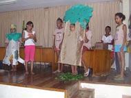 Crianças e adolescentes que viviam em situação de trabalho infantil, risco e vulnerabilidade social e que, depois de ingressar nos programas sociais da Secretaria Municipal de Assistência Social e Cidadania (Semasc) se destacam socialmente na arte teatral, prestaram uma homenagem especial aos idosos do Grupo de Convivência do Castelo Branco, numa iniciativa para comemorar o 27 de setembro, data dedicada ao Dia Nacional do Idoso. Estas crianças e adolescentes, inseridos no Programa de Erradicação do Trabalho Infantil (Peti), executado pela Prefeitura Municipal de Aracaju por meio de Secretaria Municipal de Assistência Social e Cidadania (Semasc), fizeram uma apresentação teatral com tema voltado para a necessidade de preservar o meio ambiente. É por meio da jornada ampliada do Peti que este grupo tem a oportunidade de exercer a cidadania e obter conhecimentos. O grupo de atores mirins é formado por nove crianças e adolescentes com idade entre 8 e 14 anos, que protagonizaram a peça teatral Amigo Rio´, numa demonstração de carinho e respeito aos idosos, que fazem parte do Grupo de Convivência da Terceira Idade atendido pela Semasc no bairro Castelo Branco. O texto se inspira na preservação do meio ambiente e a importância da água para a natureza. As crianças mostraram muita criatividade em cena e, no final da programação, os idosos aplaudiram a dedicação do grupo. O momento foi marcado por alegria e integração social no Instituto Lourival Fontes, no Castelo Branco, onde a peça foi encenada. O grupo não escondeu a emoção por se apresentar para os idosos. Feliz por homenagear os idosos em seu dia especial, Bruna Rosa da Conceição Moura, 8, representou o Sol na peça teatral Amigo Rio. Gosto muito dessa peça teatral e tudo que aprendo no Peti, resume. Antes de entrar nesse programa eu ficava em casa brincando e assistindo TV, agora tenho oportunidade de aprender a dançar, pintar e outras coisas que aprendo no Peti, relata. Da mesma forma frisa Davi Nascimento de Deus, 10 anos. É muito bom participar dessa peça teatral. Eu gosto das atividades desenvolvidas do Peti, afirma. Em palco, as crianças e os adolescentes vivenciaram verdadeiro espetáculo artístico, no qual o artista principal foi o talento, deixando o público emocionado. Realmente eles demonstram ser crianças inteligentes que têm talento para prosseguir na carreira artística. Acredito que é só dar uma oportunidade que eles ingressam em seus objetivos, observa Ivone dos Santos, 66 anos, satisfeita com a homenagem do grupo. Para Auxiliadora Meneses, 62 anos, a homenagem foi um presente que ela recebeu no Dia do Idoso. Estou muito feliz por estar aqui assistindo a peça teatral dessas crianças. Esse presente que recebemos hoje agradeço a toda equipe responsável. Hoje eu percebi que essas crianças têm muito talento, sobretudo que eles aprendem no Peti, comenta. Estou muito emocionada com essa bela apresentação que acabei de assistir. Realmente eles possuem um talento espetacular para o teatro. Espero rever essa peça teatral outras vezes, comenta Neuza Soares, 61. Narradora da peça teatral, Brenda da Conceição Moura, 11, afirma que o momento é muito importante. A peça Amigo Rio é muito importante, pois além de demonstramos o nosso talento para a sociedade, estamos ensinando como preservar a natureza, diz. A educadora social Luciana Colombo Santos revela que a peça foi montada a partir de temas transversais discutidos com o grupo durante a jornada ampliada do Peti. Nossa parte foi mostrar para eles a questão da integração e da socialização com pessoas da comunidade para que, a partir dessa idéia, eles possam despertar o ato criativo e o conhecimento da temática da peça teatral, comenta. Esse trabalho resgata a cidadania, os direitos e deveres do cidadão, analisa. A peça teatral foi construída através de fotos, recortes de jornais e revistas e informações sobre o meio ambiente. Durante o período da montagem, as crianças foram orientadas pelos educadores sociais da Semasc, formada pela equipe multidisciplinar composta por Ana Lúcia Macedo, Luciana Colombo, Sheila Maria Macedo, Danielle Pereira Santana e o voluntário Leonardo Dornelles. Com esse trabalho, essas crianças conseguem mostrar para a sociedade que são capazes, que têm potencial e são valorizadas, observa a educadora social, Ana Lúcia Macedo. A nossa proposta não é ficar limitado. É levar esse excelente trabalho para as escolas, bairros, para a comunidade, associações de moradores, fazendo assim, a divulgação desse trabalho. A importância fundamental é o valor de cada componente da peça teatral, destaca. Conheça o elenco: Henrique da Conceição, 12, representando o Pássaro Elaine Vieira, 13, a Sonoplasta Davi Nascimento de Deus, 10, o Papagaio Rafael Henrique, 10, o Poluidor Maxuel Silva, 11 anos, representando o Rio Brenda da Conceição Moura, 11, a Narradora Bruna Rosa da Conceição Moura, 8, o Sol Tatiana Santos, representando a Natureza Crislayne Fernanda, 10, a Árvore