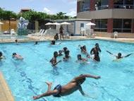 Trinta e um adolescentes atendidos pela Secretaria Municipal de Assistência Social e Cidadania (Semasc) vivenciaram mais um dia de lazer no balneário do Sesc/Atalaia, com direito a banho de piscina, de sol e outras atividades lúdicas e recreativas que o espaço oferece. O dia diferente foi proporcionado pela Semasc aos adolescentes que integram o Programa de Erradicação do Trabalho Infantil (PETI), atendidos no Centro de Referência de Assistência Social João Oliveira Sobral, localizado no bairro Santos Dumont. A idéia maior dessa atividade foi proporcionar aos adolescentes um dia inesquecível já que, muitos destes, nunca tiveram acesso a um espaço de diversão antes de ingressarem no Projeto, pois viviam em situação de exploração do trabalho infantil. Acompanhados de educadores socais e estagiários, os adolescentes aproveitaram todos os momentos do dia. A piscina foi o espaço mais atrativo para todos eles, onde se esbaldaram por grande parte do dia, deixando o salão de jogos e o futebol para aproveitarem no final da atividade. Wanderson Santos de Jesus, 14, foi um que quase não saiu da piscina. Eu adoro clube, foi bem legal esse passeio porque são atividades especiais que acontecem. E é muito bom, observa o garoto. O Peti, além de tirar a gente da rua, nos leva para lugares especiais. Eu adoro isso porque a gente sai da rotina, se diverte e é muito bom. Antes de entrar no PETI eu pegava carrego na feira, mas hoje eu não trabalho mais e isso foi bom porque meu desempenho na escola melhorou bastante. Aprendo muitas coisas no Projeto, complementa. Leandro Santos da Silva, 15, não mediu palavras para falar do passeio e do Projeto. Está maravilhoso. Não é todo dia que temos essa oportunidade e é muito bom para descontrair e sair da rotina. Eu mesmo só tenho a agradecer ao Projeto por me proporcionar um dia maravilhoso, diz o adolescente, que já faz parte do Programa há três anos e sabe dos benefícios que as atividades da Semasc lhe proporciona. Eu antes vendia frutas na feira e não tinha tempo de ir à escola, nem estudar, mas hoje eu tenho um espaço no PETI, que me ensina coisas novas e me ajuda até na escola. O PETI é tudo porque tira as crianças da rua e ajuda a gente em tudo, revela Leandro. Nataline de Sá Menezes, 15, diz que nunca vai esquecer esse dia. É a primeira vez que venho aqui e estou achando ótimo porque tem muitas opções para a gente brincar. É divertido o PETI porque ele deixa o dia da gente maravilhoso. Eu mesma nunca tive aqui e só estou hoje porque faço parte do Programa. Antes trabalhava vendendo no sinal, mas hoje eu não faço mais isso. Graças a Deus entrei no PETI porque agora estudo mais e aprendo artes, cultura, a tocar flauta e conheço lugares assim. Esse dia eu não vou esquecer, afirma Nataline. Para a estagiária de serviço social, Flávia Augusta Santos de Melo, da Semasc, que acompanhou a garotada, esse dia recreativo e de integração entre os adolescentes será inesquecível para todos eles. A grande valia desse passeio é que eles não têm acesso a lugares como esse e aqui, com certeza, vai ficar na memória de cada um e também é um dia de reflexão para eles despertarem e valorizarem esses momentos. Até mesmo para esquecerem os momentos difíceis que já viveram. Além disso, faz bem essa integração social para nossas atividades, observa.
