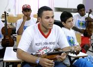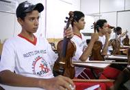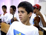 Uma iniciativa da administração municipal está oferecendo a descoberta de um mundo completamente novo a jovens do bairro Coroa do Meio. Graças a uma iniciativa integrante do projeto Jovem Aprendiz, eles estão aprendendo a tocar violino e tendo contato com a profundidade da música erudita, ampliando suas perspectivas de crescimento cultural e inserção no mercado de trabalho. O projeto é desenvolvido através da Secretaria Municipal de Assistência Social e Cidadania (Semasc), dentro das premissas dos programas Agente Jovem e Jovem Aprendiz, destinados ao atendimento de adolescentes em idade escolar com atividades lúdicas, arte e educação. A Oficina de Violino iniciou em junho de 2005, quando iniciamos o trabalho com cinco alunos diz o educador social Cláudio Pinto, responsável pela oficina. Segundo ele, que também é pedagogo, pós-graduado em Arte-Educação e possui curso de Regência, o grande obstáculo inicial para os alunos foi a adaptação à teoria musical e o despertar do gosto pelo repertório erudito. Havia alguma dificuldade que logo foi superada com a percepção da beleza da música, em qualquer das suas vertentes. Eles hoje até se emocionam com uma bela peça clássica executada com primor, relata o instrutor, ao afirmar que o grupo, formado por 10 alunos, já detém cerca de 20 músicas em seu repertório, variando da MPB à Mozart, Bach e Chopin. Oportunidades Segundo o instrutor, alguns dos alunos em estágio mais avançado já começam a buscar novos rumos com a participação em processos seletivos para o Conservatório de Música de Sergipe e a Orquestra Jovem do Estado. Além do crescimento cultural, eles também podem optar pela música profissionalmente se tiverem dedicação e afinco para continuar os estudos. Pelo interesse que demonstram, não tenho dúvida que daqui sairão grandes profissionais avalia Cláudio Pinto. Eu ficava toda tarde em casa, sem muita motivação pra fazer as coisas. Jogava bola, vídeo game e não me interessava muito por nada. Aí, entrei no projeto e me ofereceram os curso de artes plásticas, violino e dança. Optei pelo violino e estou muito orgulhoso do que fiz e do que ainda posso fazer, relata Felipe Leandro Santos, um dos primeiros alunos que se realiza a cada apresentação pública do grupo. De forma semelhante, a jovem Priscila Bezerra Rodrigues, 16, a única mulher da turma, relata o encantamento com a descoberta da música erudita. Estou muito animada a continuar estudando a aprender cada vez mais sobre o instrumento e a música em si. São coisas muito bonitas e não tinha acesso a isso antes, diz. Segundo Cláudio Pinto, dependendo do empenho de cada um, eles podem ingressar profissionalmente em orquestras já existentes ou até formarem uma orquestra independente buscando novos nichos de mercado. O mais importante de tudo é que eles têm uma nova perspectiva com outras opções, além da importância que certamente a música trará para suas formações como indivíduos, finalizou. As aulas ocorrem duas vezes por semana (terças e quintas, das 14h30 às 16h30) no Centro de Referência Benjamin Alves de Carvalho, no bairro Coroa do Meio.