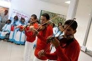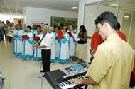 O Centro Administrativo Professora Aluísio Campos foi tomado, na manhã de hoje, pelo clima natalino trazido pelos idosos e adolescentes atendidos nos programas sociais executados pela Secretaria Municipal de Assistência Social e Cidadania (Semasc) para atender a população em situação de risco e vulnerabilidade social. Funcionários e pessoas que buscavam os serviços da Prefeitura Municipal de Aracaju tiveram a oportunidade de conhecer de perto os resultados práticos das ações sociais desenvolvidas pela Semasc em diversos bairros da capital com famílias em situação de risco e vulnerabilidade social. As apresentações aconteceram no salão da entrada da PMA e atraíram muita gente. Funcionários e transeuntes apreciaram o espetáculo, que começou com a apresentação do Coral do Grupo de Convivência da Terceira Idade Padre José de Anchieta, atendido no bairro Augusto Franco. O Coral encantou os presentes entoando músicas tradicionais natalinas, cantadas em coro com acompanhamento de cavaquinho, zabumba e teclado, sob a regência do educador social Cláudio Pinto. O servidor público Raimundo de Oliveira, componente da Guarda Municipal, acompanhou as apresentações e também se emocionou. Foi muito bom. Acho que o folclore tem que ser sempre mostrado para o pessoal. E é muito bom o trabalho da Secretaria de Assistência de divulgar todo esse trabalho, analisa Raimundo. Com certeza fiquei surpreso com os idosos que mostraram que a idade pode ser qualquer uma para apresentar uma coisa tão bonita quanto essa, completa Raimundo. Após a apresentação do Coral, foi a vez do Grupo de Idosos Renascer, atendido no bairro são Conrado, mostrar que a alegria de viver, animação e vitalidade não têm idade. Caracterizados com motivos natalinos, o grupo apresentou um tema folclórico conhecido como Pastoril, embalado por cantigas e danças natalinas. O grupo Renascer encantou, arrancando aplausos daqueles que passavam pelo Centro Administrativo. Para Maria de Lourdes Santana, 63, a apresentação de hoje caracterizou mais uma diversão. Eu acho muito bom participar porque é uma distração e uma diversão para a gente que está nessa idade. Eu gosto muito de me apresentar e acho bom porque eu faço a parte do Anjo, que acompanha São José e Nossa Senhora, afirma a simpática senhora, que faz parte do Grupo Renascer. Lá no grupo a gente deixa para trás os problemas. A gente reza, canta e se diverte muito, afirma ainda Maria de Lourdes. De mesma opinião é Maria Joana da Silva, 87. Gosto muito do grupo. Eu não perco um dia porque é tudo muito bom: a gente brinca e se diverte, comenta Joana. Maria da Luz, 77, não esconde alegria em participar das atividades do Grupo de Convivência da Semasc. Eu estou nesse grupo há quatro anos e participo do Coral. Desde que entrei, minha vida ficou mais agradável, alegre e eu me sinto feliz e onde tiver apresentação estou no meio, observa Maria da Luz. O servidor Carlos Militão de Araújo, que há 22 anos trabalha na PMA foi surpreendido com o pedido do Grupo Renascer para participar da apresentação, substituindo um dos componentes do grupo que interpreta um dos reis magos. Me convidaram e eu aceitei. È muito bom comemorar o natal com o pessoal. Eu nunca tinha participado de nada parecido antes e gostei muito. E se me convidarem de novo eu vou com o maior prazer, afirma Militão, que foi aplaudido pelos colegas de trabalho pela iniciativa. Para finalizar as apresentações, entraram em cena os adolescentes atendidos pelo Programa Jovem Aprendiz. Eles tocaram violino, surpreenderam a platéia, que não escondeu o encanto com os talentos da garotada e entoaram, de mãos dados, as canções executadas pelo grupo de jovens. Para Wesley da Silva santos, 17, o reconhecimento do público foi motivador. Gostei de tocar aqui. Há cerca de um ano e meio entrei nos Programa Agente Jovem e comecei a aprender violino. Depois passei para o Agente Jovem e agora o que quero é me profissionalizar para me tornar um músico, revela Wesley.