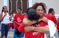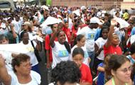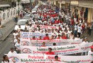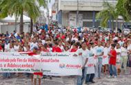 O tempo nublado e, em alguns momentos, até com chuva, não atrapalhou a Caminhada pela Paz organizada pela Secretaria Municipal de Assistência Social e Cidadania (Semasc) para marcar o 18 de maio, data dedicada ao Dia Nacional de Combate ao Abuso e à Exploração Sexual de Crianças e Adolescentes. Centenas de pessoas entre adolescentes, jovens e adultos acompanharam a manifestação, que culminou com um ato público na Praça Fausto Cardoso. Por onde o grupo passou contou com a adesão de transeuntes. A secretária Rosária Rabelo, de Assistência Social e Cidadania de Aracaju, acompanhou de perto todo o trajeto da caminhada. Durante o percurso, a secretária conversou com jornalistas e com manifestantes, destacando a importância do engajamento de toda a sociedade nas ações de combate à violência infanto-juvenil. Isso é uma questão que ocorre em todas as classes sociais e a sociedade não pode ficar omissa, comentou. É de paz que precisamos. Nosso país precisa de paz para que possamos ter mais respeito por nossos adolescentes. Nossa infância não é futuro. Ela é presente e precisamos agir agora. São vocês que podem ser protagonistas de uma nova história do país, completou. O público atendido nos programas sociais executados pela Semasc também participou ativamente da manifestação, tomando as ruas do centro da capital clamando pelo fim da prática de violência contra os jovens e fazendo um apelo para que a sociedade não seja conivente com este crime. Hoje é um dia de luta. Entretanto, além de lutar contra a violência, precisamos também barrar o preconceito da sociedade em fechar os olhos para o problema. Violência sexual é crime e calar é consentir, destacou o coordenador do Programa Municipal de Enfrentamento à Violência Sexual Infanto-Juvenil (Sentinela), Ricardo de Souza Lima. Para a presidente do Conselho Municipal dos Direitos das Crianças e Adolescentes (CMDCA), Mônica Ferreira, a luta contra a violência deve ser permanente. Não é apenas em um dia que devemos lembrar e lutar contra a violência sexual infanto-juvenil. Todo dia é dia de luta, afirmou. Opinião compartilhada com a presidente do Fórum dos Direitos da Criança e do Adolescente (FDCA), Lídia Rego. O problema é muito grande e não podemos nos calar. É preciso da união de todos nós para que possamos melhorar esta situação crítica, observou Lídia. A caminhada contou ainda com a participação de representantes de outros órgãos públicos, que se somaram à causa, a exemplo da Seccional da Ordem dos Advogados do Brasil em Sergipe (OAB/SE). A Semasc está de parabéns e hoje todas as crianças estão aqui na rua para dizer não à exploração e não ao abuso, afirmou o advogado Thiago José de Carvalho Oliveira, que representa a OAB/SE no Conselho Estadual dos Direitos da Criança e do Adolescente. Os estudantes não se intimidaram a clamar por Paz. Estou aqui porque sei o que pode acontecer com os jovens e, por isso, vim me somar à caminhada, afirmou a estudante Camila Rodrigues Andrade. É uma vergonha um adulto praticar esta violência com um adolescente e, por isso, todos nós devemos ficar atentos e denunciar, completou o também estudante Guilherme Santos Bezerra. Já o professor Walter Dias Oliveira afirmou que o grande problema dos altos índices de violência contra os jovens são registrados na própria família. Tudo gira em torno do lar. Se uma pessoa tem um convívio familiar com paz e harmonia, a criança vai tornar-se um adulto responsável e um cidadão de bem, afirmou.