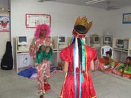 As comemorações alusivas ao mês do Folclore, comemorado em agosto, deram um colorido especial às ações desenvolvidas nos programas sociais executados pela Secretaria Municipal de Assistência Social e Cidadania (Semasc). Neste sentido, a Semasc realizou no Centro de Referência da Assistência Social (CRAS) Porto Danta, uma atividade muito especial com as crianças e adolescentes do Programa de Erradicação do Trabalho Infantil (Peti). A Mostra Folclórica, que já faz parte da programação anual do CRAS, tem com o objetivo o resgate da cultura popular. Este ano, a Mostra Folclórica trouxe uma atividade desafiadora e criativa para a garotada: resgatar a tradição folclórica através do livro `Minha Vida Tem História II´. Mas a imaginação e a criatividade da garotada foi além. Durante o desenvolver da Mostra Folclórica, as crianças e adolescentes que fazem parte da oficina de dança do Peti fizeram uma bela apresentação com o espetáculo Traços Sergipanos. As crianças e adolescentes conseguiram, através da dança e do teatro, transmitir a cultura popular de uma forma contagiante e divertida. A apresentação trouxe a mistura de três espetáculos: Papagaio Joaquim, Com Panos e Lendas e Os Palhaços, todos produzidos pelas crianças e adolescentes da oficina de dança, sob a orientação do educador social Sidney Azevedo. A garotada também fez uma exposição de cartazes, artesanato e comidas típicas regionais como pé-de-moleque, tapioca, arroz doce, cocada e outras saborosas comidas da terra. Nos cartazes, os adolescentes relataram a história de vida dos personagens do livro Minha Vida Tem História II, enfocando sempre a tradição cultural de cada um. Crianças e adolescentes atendidos no CRAS do bairro Suissa, através dos Programas Agente Jovem e Peti, foram prestigiar a 4° Mostra Social do bairro Porto Danta. Segundo o educador social Sidney Azevedo, é muito importante essa integração entre os CRAS, quando há atividades de cunho educativo com as crianças e adolescentes que antes viviam sem nenhuma perspectiva de vida. É um momento em que eles se comunicam e trocam conhecimentos, acho isso muito importante, comenta o educador, que revela se sentir realizado ao ver esse trabalho. Eu vejo crianças e adolescentes aqui muito alegres quando fazem essas atividades e que antes viviam sem perspectiva nenhuma, mas hoje eles estão mais soltos e se sentem capazes de produzir qualquer coisa. Isso é muito bom para nós, educadores sociais. Eu mesmo me sinto realizado, diz o educador. Entre os adolescentes, o clima também foi de satisfação ao perceberem que o Programa de Erradicação do Trabalho Infantil vem transformando a vida de cada um. Elaine da Silva Santos, 13, prefere não lembrar muito do passado, já que antes de entrar no Peti trabalhava na feira vendendo frutas. Eu agora não preciso mais disso, graças ao Peti, que está me dando oportunidades de estudar mais e aprender coisas novas, revela. Luís Felipe Santos Moura, 12, só teve a oportunidade de descobrir seu talento artístico ao entrar no Peti. Segundo o jovem, que faz o personagem Papagaio Joaquim no espetáculo Traços Sergipanos, é muito importante o trabalho que o Peti desenvolve. Está valendo muito apena participar do Peti. Ele já melhorou demais minha vida e tenho certeza que vai melhorar cada vez mais. Eu me sinto muito feliz quando estou aqui e é melhor do que estar na rua sem aprender nada, comenta.