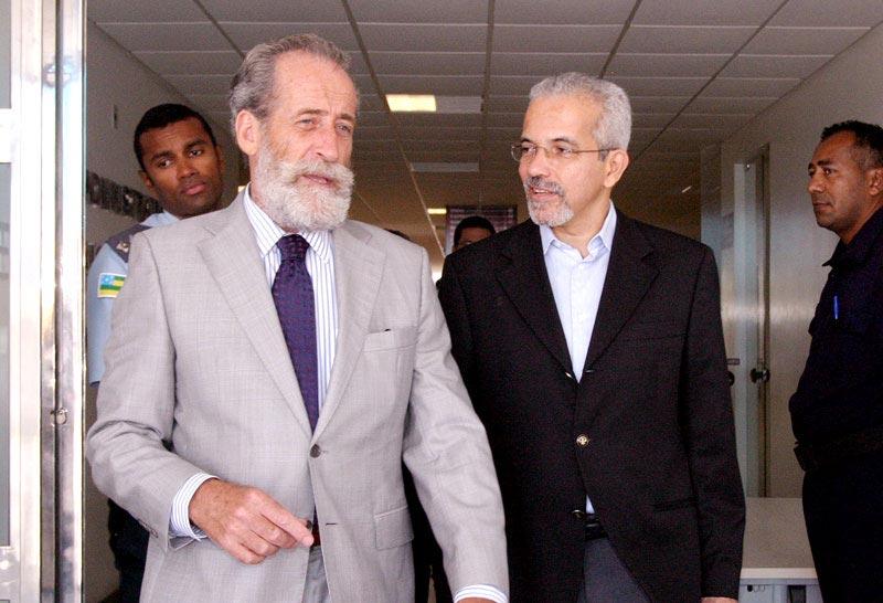O prefeito de Aracaju, Edvaldo Nogueira, recebeu agora há pouco em seu gabinete no Centro Administrativo Prefeito Aloísio de Campos a visita do embaixador da Espanha no Brasil, Ricardo Peidró Conde. Durante o encontro, do qual participaram também os secretários Bosco Rolemberg (chefe de Gabinete) e Sílvio Santos (Governo), o prefeito e o embaixador conversaram sobre a cidade e a possibilidade de estabelecer parcerias futuras para realização de projetos na capital. Na oportunidade, Edvaldo Nogueira destacou o projeto de revitalização do Centro que está sendo elaborado em parceria com o governo francês, as obras de urbanização dos bairros Santa Maria e Coroa do Meio, e falou um pouco sobre a história de Aracaju. Somos hoje a capital Norte/Nordeste da qualidade de vida, conta. De acordo com o prefeito, os próximos dois anos serão de trabalho intenso. Vamos continuar trabalhando intensamente para honrar esse título, garante. O embaixador é casado com uma sergipana e já conhecia a cidade, mas disse estar impressionado com o desenvolvimento urbano da capital nos últimos anos. Ele conheceu ontem a urbanização da Coroa do Meio e a orla do bairro Industrial. A cidade está muito limpa. Manter este padrão não deve ser uma tarefa fácil, disse. Os dois projetos que visitei são exemplos de trabalho para dar dignidade às pessoas, elogia Ricardo Peidró. Ao final da visita, o prefeito foi presenteado pelo embaixador com o livro Dom Quixote de La Mancha, de Miguel de Cervantes, na sua versão em espanhol. Edvaldo Nogueira entregou ao embaixador títulos publicados pela prefeitura que contam a história de Aracaju, materiais de divulgação turística da cidade e CD-ROM´s com dados e informações do município organizadas pela Secretaria Municipal de Planejamento (Seplan).