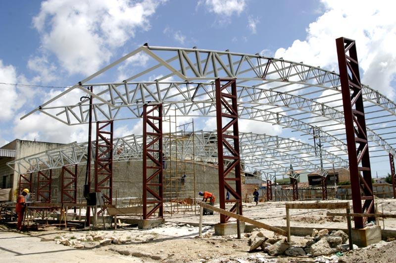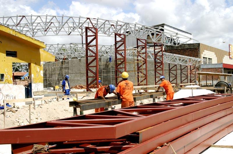 O mercado setorial do conjunto Bugio, zona Oeste da cidade, começa a ganhar definições de nova e confortável estrutura que abrigará comerciantes e consumidores da localidade e adjacências. A área será coberta por uma resistente estrutura metálica, a qual está sendo montada nesta manhã e segundo o mestre de obras, José Almeida, estará finalizada na próxima semana. Além da montagem da cobertura metálica, estamos esperando os blocos para iniciar a camada de concreto e também estamos finalizando as sapatas que dão sustentação à cobertura, declara. Segundo ele, a rede de esgotos está completamente pronta e a demolição da área construída, onde funcionavam outros comércios, será parcial. Iniciamos a derrubada dessas estruturas, mas iremos preservar parte das paredes na nova estrutura do mercado. E a previsão é de que na próxima semana 50% da área esteja completamente coberta, salienta o mestre de obras. A obra, avaliada em R$ 698 mil, apresentará um novo espaço de comercialização dividido em cinco blocos abrigando um total de 66 boxes, lanchonetes e restaurantes. Tudo será coberto e bem diferente do que era antes, com barracas espalhadas. Assim evitará transtornos e garantirá segurança e conforto aos comerciantes e consumidores, diz José Almeida. De responsabilidade da Prefeitura de Aracaju, a construção do mercado do Bugio é executada pela Empresa Municipal de Obras e Urbanização (Emurb).