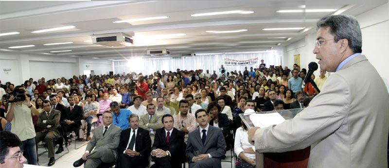 “Nenhuma secretaria será palanque do projeto político individual de ninguém”. Foi com esta recomendação que o prefeito de Aracaju, Marcelo Déda, empossou na manhã de hoje os 17 secretários municipais de sua segunda gestão juntamente com o vice-prefeito Edvaldo Nogueira. A solenidade, realizada na Sociedade Semear, simbolizou o início da nova fase da administração municipal que segundo o prefeito será marcada pela ampliação de suas ações. “Todos os secretários deverão manter uma relação respeitosa e transparente com a Câmara de Vereadores, priorizar as deliberações do Orçamento Participativo e manter a unidade política e administrativa da prefeitura sem competições internas”, afirmou o prefeito. “O OP foi a alma da minha primeira gestão e continuará sendo porque a melhor forma de preservar a democracia é oxigená-la com a participação popular”, enfatizou. De acordo com Marcelo Déda, o ano de 2005 será intensamente dedicado ao trabalho. “Este é um ano para cumprir prazos, realizar obras e projetos sociais, e levar na ponta as ações da prefeitura ao povo que mais precisa”, apontou o prefeito. “Na primeira gestão tivemos companheiros da mais alta competência. As mudanças não põem em cheque a qualidade do trabalho de nenhum dos que não estão presentes nesta nova equipe”, enfatizou. Assumiram seus cargos os novos secretários: vice-prefeito de Aracaju, Edvaldo Nogueira (Governo); Tereza Cristina da Graça (Educação); Francisco Dantas (Administração); Karlene Sampaio (Funcaju); José de Oliveira Júnior (Chefe do Gabinete do Prefeito); e João Andrade (Emsurb). Foram reempossados Nilson Lima (Finanças); Rogério Carvalho (Saúde); Lúcia Falcón (Planejamento); Rosária Rabelo (Assistência Social); Milton Alves (Comunicação); Moacir Santana (Controle Interno); Frederico Romão (Participação Popular); Sérgio Ferrari (Emurb); Bosco Mendonça (SMTT); Edson Caetano (Trabalho) e Clóvis Barbosa de Melo (Procuradoria). Relação da PMA com a Câmara “No primeiro mandato nós estabelecemos uma relação de extrema qualidade com a Câmara de Vereadores, que durante os quatro anos de nossa primeira gestão teve a liderança firme, cidadã e cooperativa do vereador Sérgio Góes”, disse o prefeito Marcelo Déda. “Sem a colaboração da Câmara e sem a compreensão do seu presidente, muitas questões não teriam as resoluções que obtivemos”, analisou. Para Marcelo Déda, a relação de respeito e transparência entre a Prefeitura de Aracaju e Câmara de Vereadores será preservada. “Eu espero e tenho certeza de que a eleição da nova mesa da Câmara não se traduzirá numa ação de conflitos, mas de cooperação e harmonia onde haverá eventualmente divergências. Nossa luta será para ter uma sadia relação com o poder legislativo, lastreada nos princípios que homenageiem o patrão da democracia, que é o povo”, finalizou.