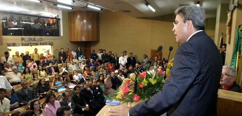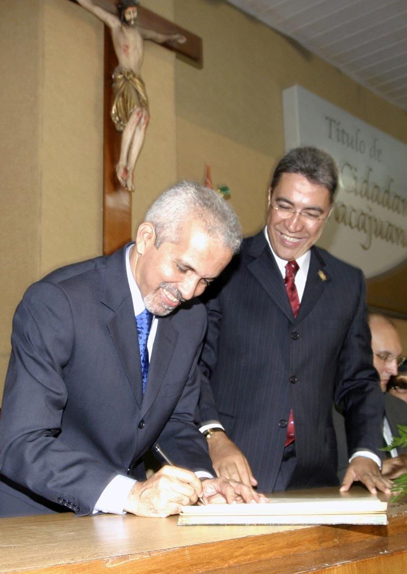 Os votos que saíram das urnas não foram para nossos bolsos, mas para nossos ombros. Foi assim que o prefeito de Aracaju, Marcelo Déda, resumiu a sua responsabilidade e a do vice-prefeito Edvaldo Nogueira durante a solenidade em que foram empossados para exercer o segundo mandato à frente do poder executivo da capital. A cerimônia aconteceu na Câmara de Aracaju no início da tarde de sábado, logo após a posse dos vereadores eleitos em 2004. Ao agradecer o apoio que teve da população, o prefeito refletiu sobre as realizações de seu governo. A reeleição significou a confirmação de que não traímos nossa geração e nem o nosso pacto com o povo. Os votos afirmam os acertos ao mesmo tempo em que aprofundam a responsabilidade que levamos, disse Marcelo Déda. Não temos o direito de nos conformar com as vitórias que já alcançamos, ratificou. De acordo com ele, a maior obra de sua gestão não foi construída com cimento. Nossa maior realização foi ter reduzido em quase 1/3 a mortalidade infantil de Aracaju, salvando e preservando vidas, afirmou. O prefeito também agradeceu o trabalho e reafirmou o compromisso social de sua equipe. Nós abrimos espaço para que uma nova geração mostrasse seu talento e criatividade. Para o primeiro trimestre deste ano, Marcelo Déda anunciou a assinatura da ordem de serviço para iniciar as obras do segundo Pronto-Socorro Municipal de Urgência e Emergência, desta vez o da zona Sul. Ele informou ainda que mais R$ 14 milhões foram captados no último dia 30 junto à Caixa Econômica Federal para a reconstrução do bairro Santa Maria, investimento que ultrapassará os R$ 50 milhões. Emocionado, o prefeito encerrou sua fala agradecendo a família e amigos, a lealdade do vice-prefeito Edvaldo Nogueira, os ensinamentos do presidente da República Luiz Inácio Lula da Silva e o companheirismo do presidente da Petrobras, José Eduardo Dutra, que participou da solenidade de posse. Ele destacou ainda o trabalho da Câmara de Vereadores durante a sua gestão à frente da PMA. O senador Antônio Carlos Valadares, o deputado federal Jackson Barreto, os deputados estaduais Ana Lúcia e Fabiano Oliveira, os secretários municipais, vereadores eleitos, presidentes de partidos, além de diversas autoridades políticas e eclesiásticas prestigiaram a solenidade de posse.