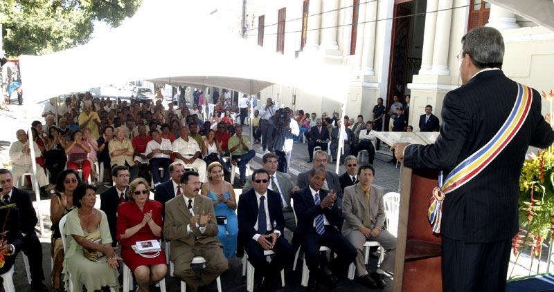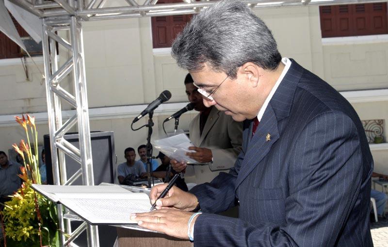 Dedico este momento ao povo de Aracaju. Com esta frase, o prefeito Marcelo Déda destacou a importância do ato onde foi reconduzido oficialmente, ao lado do vice-prefeito Edvaldo Nogueira, ao cargo de chefe do Poder Executivo Municipal. A solenidade ocorreu em frente ao palácio Ignácio Barbosa, contando com a participação de diversas autoridades, aliados políticos, secretários municipais e centenas de cidadãos de Aracaju. O dispositivo de honra foi ocupado pelo prefeito e a primeira-dama, Eliane Aquino, o vice-prefeito e sua esposa, Indira Amaral, além do presidente da Petrobras, José Eduardo Dutra. Após a leitura e respectiva assinatura do Termo de Posse, pelo prefeito e pelo vice-prefeito, Marcelo Déda recebeu a insígnia de Grão-Mestre da Ordem do Mérito Serigy, a mais alta honraria representativa do município de Aracaju, correspondente ao cargo de prefeito. Em seguida, foi executado o novo hino de Aracaju, composto pelo maestro José Gentil Leite. Já tive oportunidade, na Câmara Municipal, de expressar todos os meus sentimentos e todo o meu reconhecimento ao povo desta terra pelo momento que estamos vivendo: a alegria de poder ter sido prefeito e a satisfação de ser reconduzido, pelo voto popular, para mais um mandato, disse o prefeito. RECONHECIMENTO O prefeito fez questão de salientar todo o seu orgulho em comandar os destinos da cidade, justamente no ano do sesquicentenário. Quero, mais uma vez, expressar todo o meu agradecimento a todo o povo de Aracaju. A todos os homens e mulheres da minha cidade que, dos bairros mais distantes aos bairros centrais, fizeram da nossa administração uma bandeira de afirmação dos seus direitos, transformando essas eleições num momento onde a cidadania foi às ruas defender suas conquistas e vitórias, destacou Marcelo Déda. Ele reafirmou o seu compromisso em continuar honrando a história de Aracaju e o desejo de sucesso de sua população. Tenham certeza que os 186.506 votos que recebemos não serão vistos como atributo pessoal, ou algo que me embeveça ao ponto da vaidade vã. Esses votos simbolizam e, de fato, são o peso da responsabilidade de uma cidade que, com a mesma energia que vota, cobra e exige de seus eleitos, finalizou o prefeito.
