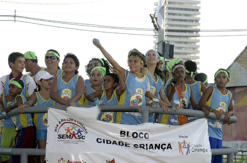 O Bloco Cidade Criança, composto por crianças e adolescentes assistidos pela Secretaria Municipal de Assistência Social e Cidadania (Semasc), fez bonito na Passarela da Alegria neste último dia de Pré-Caju 2005. São 1.200 crianças e adolescentes que integram os programas sociais executados pela Prefeitura de Aracaju, com a participação, inclusive, dos agentes do OP Mirim e alunos matriculados nas escolas municipais. Uma equipe especial de saúde, composta por clínico geral, enfermeiro, auxiliar de enfermagem, estagiário e um motorista dá suporte ao desfile mais animado do Corredor da Folia. Trata-se da Unidade de Suporte Avançado do Samu, que está preparada para atender a qualquer caso de emergência. “Montamos um esquema especial para atendimento no local e, em caso de necessidade, encaminhar o paciente para algum hospital da cidade”, informa o médico Mateus Paulinelli. A assistente social Rosária Rabelo, secretária municipal de Assistência Social e Cidadania, a professora Tereza Cristina Cerqueira da Graça, secretária municipal de Educação, e a advogada Glícia Salmeron, presidente do Conselho Municipal dos Direitos da Criança e do Adolescente, acompanham o desfile do bloco com muita animação. A garotada está sendo orientada por educadores sociais que acompanham todo percurso distribuindo lanches e água.