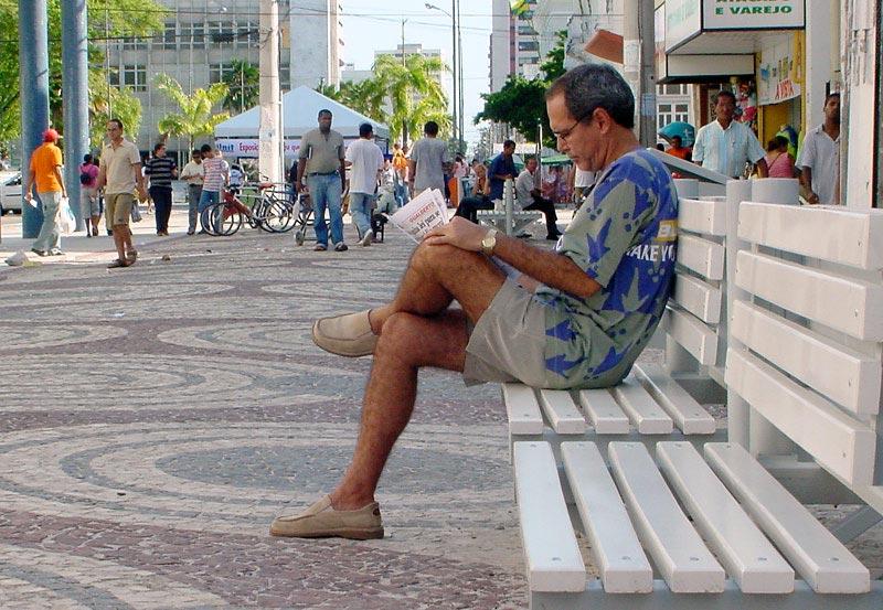 Os calçadões das ruas João Pessoa, São Cristóvão e Laranjeiras ganharam um novo visual. Depois da colocação das pedras portuguesas, a Empresa Municipal de Obras e Urbanização (Emurb) concluiu os trabalhos de implantação dos bancos. Ao todo foram implantados 56 bancos com armação em ferro e capacidade para quatro pessoas, cada. Agora, pedestres que transitam diariamente pelo local poderão contar com um maior número de assentos para descanso colocados em diversos pontos estratégicos. Utilizados de várias formas, os bancos dos calçadões vem tendo uma aceitação muito grande por parte dos aracajuanos, é o que afirma a comerciante Joseilda dos Santos. Colocar bancos em toda extensão dos calçadões foi muito bom, principalmente para a gente que trabalha o dia todo em pé. É mais uma opção de descanso, comenta Joseilda dos Santos, que faz uso dos bancos no horário de folga. Mas não é só para descanso que servem os bancos. Para o casal Manuel e Vilma, eles servem como ponto de encontro. É o lugar ideal para namorar. Com esse ventinho de fim de tarde então..., comenta Manuel da Silva, com o semblante bem descontraído. Já o funcionário público Alberto Vieira utilizou o banco para relaxar fazendo uma breve leitura. Estou de férias e resolvi passear um pouco no Centro, vi o banco e achei um bom lugar para ler o jornal, finaliza. Além dos bancos, outros equipamentos urbanos também foram instalados nos calçadões, totalizando 23 lixeiras, colocadas próximas aos assentos, 14 bicicletários, 16 floreiras, além de 16 gradis fixos e oito móveis, todos já implantados.