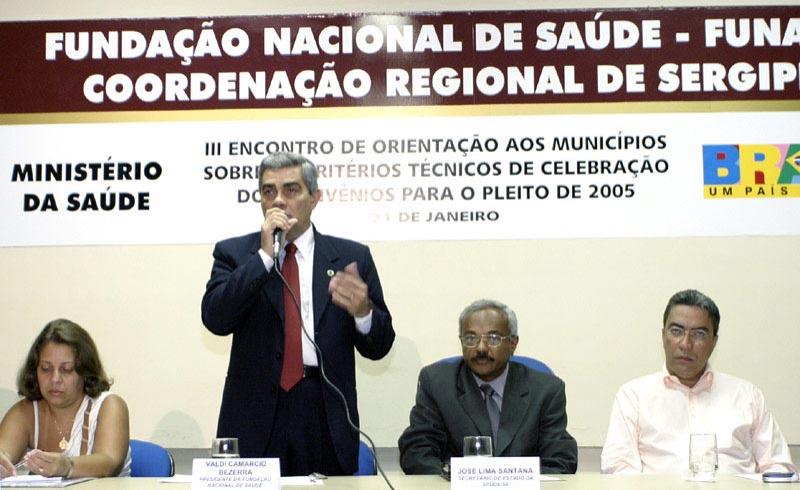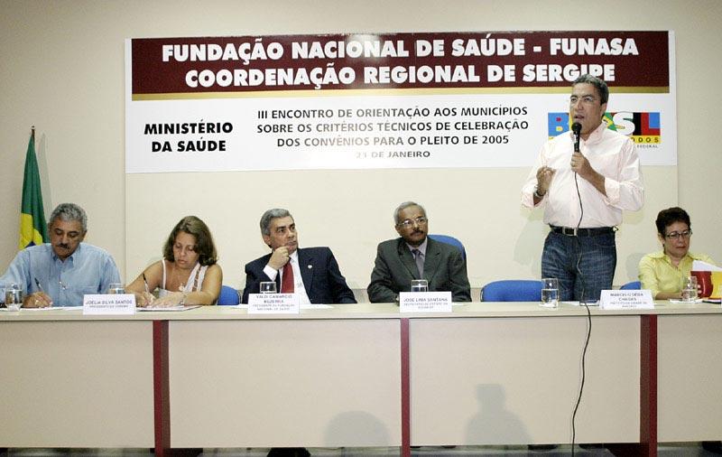 O prefeito de Aracaju, Marcelo Déda, participou na manhã de hoje da abertura do III Encontro de Orientação aos Municípios Sobre os Critérios Técnicos de Celebração dos Convênios Para o Pleito de 2005, promovido pela Fundação Nacional de Saúde (Funasa). O encontro conta com a participação de prefeitos e secretários municipais de Saúde de todo o estado. “Tenho certeza de que este evento será muito produtivo e importante principalmente para os prefeitos que estão assumindo pela primeira vez uma administração municipal”, avaliou Marcelo Déda. “A Saúde é uma política pública de maturação. Se há um bom projeto com objetivos estratégicos ele deve ser levado até o fim mesmo que os primeiros meses sejam de duras críticas”. Ele destacou a redução da mortalidade infantil de Aracaju em 30% como uma das principais vitórias de seu primeiro mandato e colocou-se à disposição dos novos prefeitos para trocar experiências adquiridas. Além de ressaltar o comprometimento do governo federal com as políticas públicas de Saúde, o prefeito destacou o papel do Sistema Único de Saúde (SUS). “Este sistema é uma das maiores e mais exitosas vitórias do povo do Brasil. O repasse de recursos fundo a fundo e a descentralização do sistema possibilita o acesso aos recursos sem qualquer espécie de constrangimento partidário”, disse o prefeito Marcelo Déda. O presidente da Funasa, Valdi Camárcio, participa do encontro. Esta é a terceira vez que ele vem a Aracaju durante os dois anos em que está no cargo. “Só teremos sucesso nesta política se trabalharmos em parceria. Vamos trabalhar para conscientizar os prefeitos a ter no saneamento uma das principais preocupações de seus governos”, afirmou. O secretário municipal de Saúde, Rogério Carvalho; a presidente do Conselho das Secretarias Municipais de Saúde (Cosems), Joélia Santos; a coordenadora regional da Funasa em Sergipe, Lourdes Goretti Reis; o secretário de estado da Saúde, José Lima Santana, além de representantes de diversas instituições participaram da abertura do Encontro.