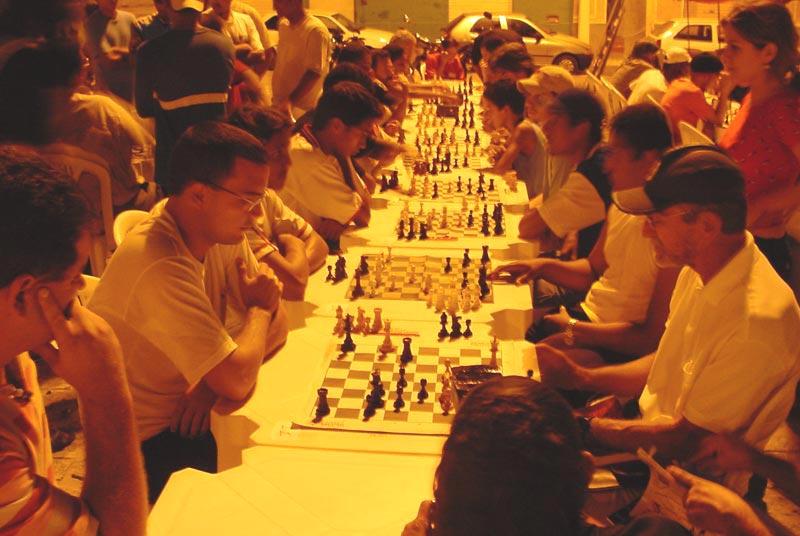 Enxadristas de várias faixas etárias marcaram presença na noite de ontem, durante a II Copa Funcaju de Xadrez da Rua da Cultura. O evento integra a programação esportiva do Projeto Verão e reuniu um grande número de praticantes no mercado municipal disputando medalhas e troféus. Já participei de diversos campeonatos regionais, mas estava há muito tempo sem jogar. Esse torneio me animou e estou achando excelente essa interação entre os experientes e os jovens que estão iniciando, relatou o médico pediatra Marcos de Barros Correia, 52. O estudante Carlos Jeferson Paixão, 16, por sua vez, aproveitou o evento para observar a técnica utilizada pelos veteranos. Para quem quer aprender, a melhor coisa é prestar atenção nesses feras jogando, declarou. O evento contou com o apoio decisivo da Federação Sergipana de Xadrez que foi a responsável pela coordenação técnica do torneio. Estamos num momento de reorganização da federação e esse evento é fundamental para divulgarmos o esporte e arrebanhar mais praticantes, sobretudo, os jovens em idade escolar. As escolas são hoje o maior celeiro de novos talentos, definiu o presidente da Federação Sergipana de Xadrez, Ney Lúcio dos Santos.