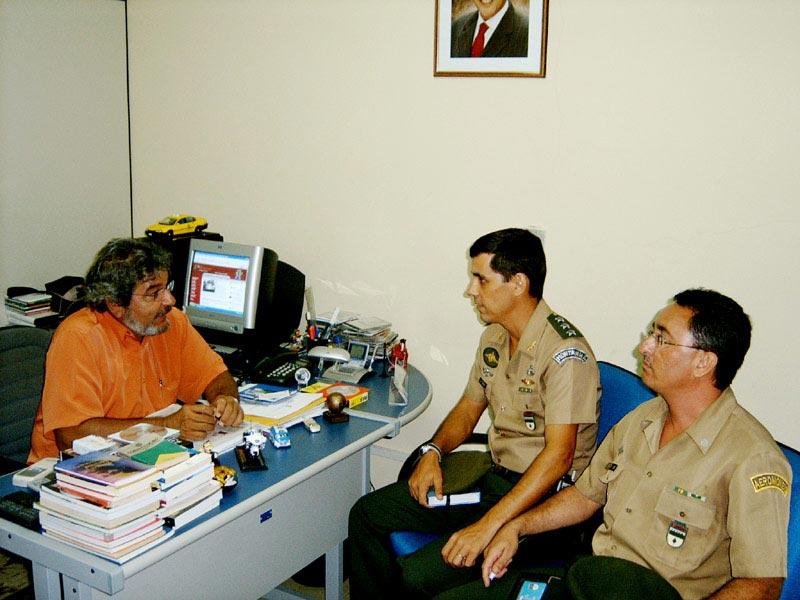 Na tarde de hoje, o secretário de Comunicação da Prefeitura de Aracaju, Milton Alves, recebeu a visita do oficial de Comunicação Social do 28º Batalhão de Caçadores, capitão Gerson Alves, acompanhado de seus auxiliares, sargento Edson da Silva e sargento Everaldo Nunes. Eles realizaram uma visita de cortesia e aproveitaram a oportunidade para sugerir a realização de uma parceria entre o Exército Brasileiro e a Prefeitura de Aracaju para a promoção de uma Gincana de Pintura. O evento integra a programação cultural tradicionalmente promovida nas comemorações pela Semana do Exército. De acordo com o capitão Gerson, o Exército sempre promove iniciativas culturais visando uma maior integração com a sociedade. Dentro dessa proposta, nada melhor do que aproveitar o aniversário de 150 anos de Aracaju para promovermos um evento em parceria, explicou o militar.
