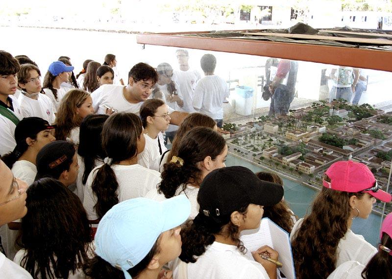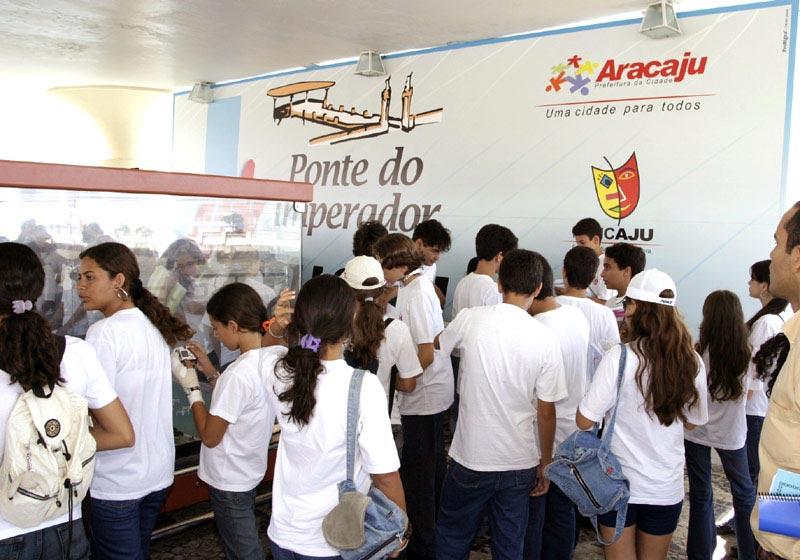 Mais de 70 alunos das 7ª e 8ª séries do Colégio Águia, visitaram na manhã de hoje, 1º de março, o Museu de Rua da Ponte do Imperador. Monitorados pelo turismólogo da Fundação Municipal de Cultura, Turismo e Esporte (Funcaju), Alberto Breno Silveira, os estudantes participaram de uma aula prática e mostraram-se muitos atentos às informações passadas. De acordo com o coordenador da escola, Jair Figueiroa, a visita tem o objetivo de propor um maior conhecimento da história de Aracaju aos alunos. Percebemos que os nossos alunos em sua maioria desconheciam a história da cidade onde vivem. E aproveitando esse momento em que Aracaju faz 150 anos, resolvemos levá-los aos principais pontos turísticos da cidade para um maior aprendizado, afirma o coordenador. Para a aluna Duília Souza, da 8º série, essa é uma visita muito importante. Nunca tinha vindo aqui, e estou adorando porque estou tendo a oportunidade de conhecer mais sobre a minha cidade, disse. Já o estudante da 7ª série, Lucas Mariano, garante que a aula foi muito interessante. Sem dúvidas vou aprender muito sobre o surgimento de Aracaju. Adorei a aula e achei muito interessante também. Após a visita ao Museu de Rua da Ponte do Imperador, os alunos seguiram para a orla do bairro Industrial e depois passaram na Colina do Santo Antônio.