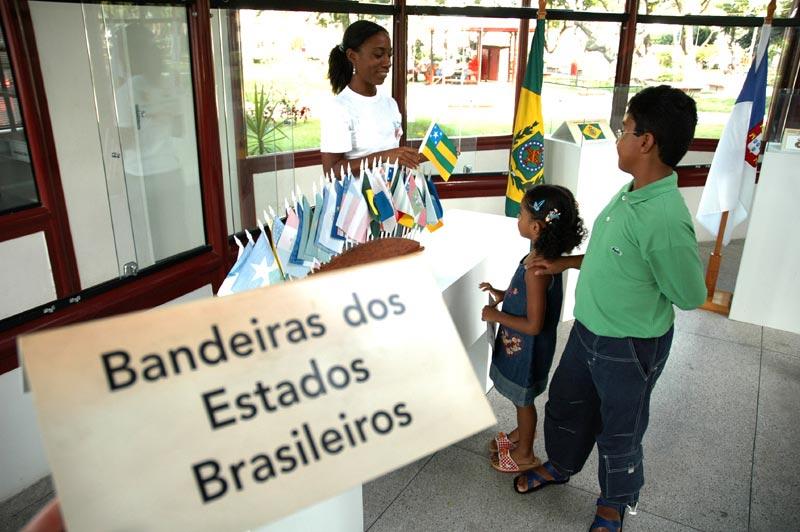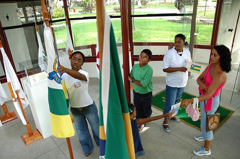 Inaugurada há pouco mais de sete meses, o Memorial da Bandeira é uma grande opção cultural para aracajuanos e turistas que desejam conhecer um pouco mais da história de Aracaju. Diariamente uma média de 20 pessoas passam pelo museu. Sejam movidos pela curiosidade ou por algum trabalho de pesquisa, estudantes e turistas se vislumbram com o que encontram no memorial. O espaço histórico, construído pela prefeitura municipal na Praça da Bandeira, abriga os símbolos e brasões nacionais e dos estados brasileiros. Símbolos que contam um pouco da história do país. Até agora já foram catalogadas mais de cinco mil visitas, o que representa um incentivo ao exercício da cidadania. De acordo com a estagiária e monitora do museu, Cândida Regina Fagundes Goes, o Memorial já faz parte do roteiro turístico de Aracaju. Hoje em dia é impossível visitar Aracaju e não passar por aqui, informa, lembrando que durante as férias a procura não ficou apenas por conta de turistas, pois vários estudantes também procuraram o museu. As pessoas vêm aqui e tem uma aula de história, e o melhor, com ilustrações. É isso que motiva a visitação e torna interessante o aprendizado, completa Cândida Regina. Para a dona de casa Lúcia Maria Moura Rosa, a razão da visita ao museu foi a curiosidade do filho que pedia para ver as bandeiras. Graças à insistência de meu filho vim aqui no museu, e essa visita fez com que eu aprendesse um pouco sobre a história das bandeira. Achei muito interessante, comenta. Já o estudante Arthur Antônio Moura Rosa, 10 anos, disse encantado tudo que aprendeu durante a visita. Ele que já tinha noção da história das bandeiras pode analisar de perto todos os detalhes de cada objeto e conhecer mais da nossa cultura. Tudo o que aprendi sobre bandeiras e símbolos foi pelas figuras dos livros. Por isso é mais interessante ver pessoalmente. É tudo grande e colorido, finalizou satisfeito. Integrante do projeto Museu de Rua, o memorial é coordenado pela Fundação Municipal de Cultura, Turismo e Esporte (Funcaju) e conta com salão de exposição, sala de internet para pesquisas e espaço para divulgação de artesanatos, tudo com acesso gratuito. Durante a visitação, dois funcionários são responsáveis pelo acompanhamento dos visitantes, mostrando toda exposição fixa das bandeiras e símbolos, relatando fatos históricos que explicam suas origens.