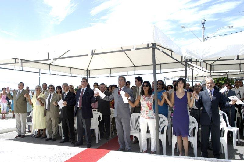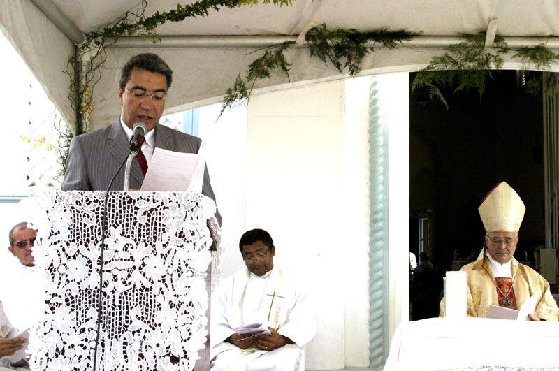 Hoje, 17, dia em que completa 150 anos de fundação, a cidade de Aracaju iniciou suas comemorações com uma Missa Campal de Ação de Graças. O ato religioso que contou com a presença do prefeito Marcelo Déda aconteceu na Colina do Santo Antônio e foi celebrado pelo arcebispo de Aracaju, Dom José Palmeira Lessa, e outros sacerdotes de diversas paróquias aracajuanas. Durante a homilia, o arcebispo elogiou o trabalho desenvolvido pelo prefeito Marcelo Déda em prol da igualdade social. "Ao comemorarmos o aniversário de Aracaju, quero aproveitar e parabenizar o prefeito por executar ao longo de seu mandato, com precisão, o lema de sua campanha que é Uma cidade para todos, fazendo com que, cada vez mais os cidadãos aracajuanos tenham acesso aos seus direitos". O prefeito Marcelo Déda aproveitou para destacar a importância da comemoração do aniversário da cidade. "Esse é um dia muito importante para todos nós aracajuanos, pois essa não é uma festa apenas da prefeitura e do prefeito, é também de toda a população da cidade. Hoje quero que o dia seja de Aracaju, um dia do povo aracajuano, um dia de paz e de amor, um dia de declarar o nosso carinho por essa bela capital". A missa contou ainda com as presenças da primeira-dama do município, Eliane Aquino, do vice-prefeito Edvaldo Nogueira, do secretário de Cultura do Estado, José Carlos Texeira, que estava representando o governador João Alves Filho, da deputada estadual Ana Lúcia Menezes, dos secretários municipais, vereadores e ex-prefeitos de Aracaju, além da marcante e emocionante apresentação do Coral da SOFISE. HOMENAGEM O prefeito Marcelo Déda fez ainda uma homenagem aos precursores de Aracaju. "Não poderia deixar de destacar o nosso fundador Inácio Barbosa pela coragem de edificar uma cidade e transformá-la em capital de Sergipe. Destaco também a classe trabalhadora pela capacidade que teve de ajudar a construir Aracaju com seu esforço e suor do seu trabalho, a todos os homens e mulheres, operários e operárias, trabalhadores e trabalhadoras que ao longo de 150 anos contribuíram para a evolução dessa cidade”, disse. “E por fim homenageio a classe empreendedora, pessoas que desde o início acreditaram em nossa capital e aqui fizeram o seu comércio, aqui instalaram suas indústrias e aqui produziram a possibilidade de gerar emprego e renda. Nessas figuras emblemáticas, eu homenageio a trajetória heróica do povo de Aracaju".