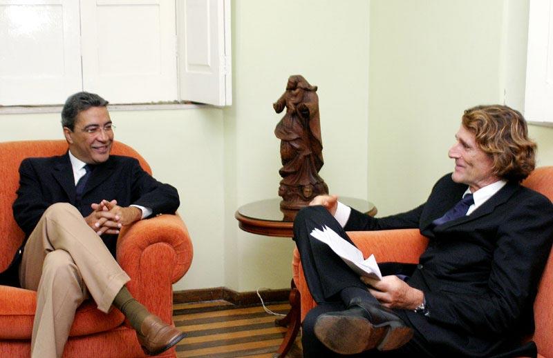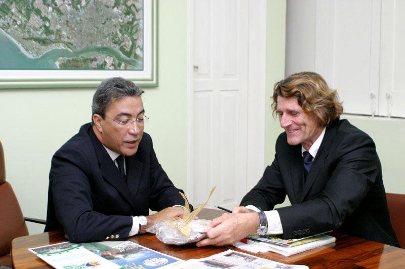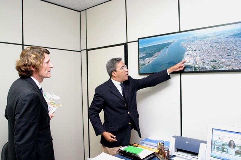 O prefeito de Aracaju, Marcelo Déda, e o cônsul geral da França em Recife (PE), Patrick Howllet-Martin, debateram no final da tarde de hoje o início de uma aproximação maior entre a capital sergipana e algumas regiões francesas para intercâmbios culturais e troca de experiências administrativas. O vice-prefeito Edvaldo Nogueira e o cônsul honorário da França em Aracaju, Monsiuer Henri Gaujac, também participaram da reunião. Durante o encontro, o prefeito e o cônsul geral discutiram o processo de descentralização da cooperação da França com o Brasil que, de acordo com o Patrick Martin, ainda encontra-se restrito ao nível federal muito federalizado. Marcelo Déda falou sobre sua experiência em relações de amizade com países da Europa desde a época de parlamentar, quando foi vice-presidente de um grupo de amizade entre Brasil e França. Além disso, na Frente Nacional de Prefeitos (FNP) houve um processo maior de aproximação, quando conhecemos mais sobre inovações no sistema de transportes e ações de expansão de cidades, inclusive planejadas pelas prefeituras, falou o prefeito de Aracaju, ex-coordenador geral da FNP e atual vice-presidente de Relações Internacionais da Frente. Ele destacou ainda o contato mantido entre Aracaju e a cidade de Saint-Denis por conta da experiência do Orçamento Participativo, desenvolvida nos dois municípios com grande êxito. Para o cônsul geral da França, o primeiro contato para estabelecer parcerias com Aracaju foi proveitoso. Podemos estabelecer grandes colaborações bilaterais em termos culturais, de urbanização e administrativos. O próximo passo é enviarmos propostas para somar às idéias da prefeitura para unir nossos esforços e estreitar o relacionamento entre a França e o Brasil, acrescentou. O prefeito Marcelo Déda fez uma explanação geral sobre a história da cidade e seu desenvolvimento. Ele detalhou o processo de municipalização da saúde e os avanços que a cidade conquistou na área, além de explicar algumas tradições culturais locais com raízes francesas, como é o caso das quadrilhas juninas, e mostrar ao cônsul um documentário sobre o Forró-Caju. Patrick Howlett-Martin disse estar impressionado com os dados de Aracaju e declarou que sua primeira impressão da cidade foi muito positiva. Tivemos uma excelente acolhida e, apesar de ter vindo do aeroporto direto para a prefeitura, a limpeza da cidade é impressionante e me faz lembrar muito minha cidade natal, Nice, que também é litorânea e tem ganhado muitos prêmios nas áreas de limpeza e conservação, afirmou.