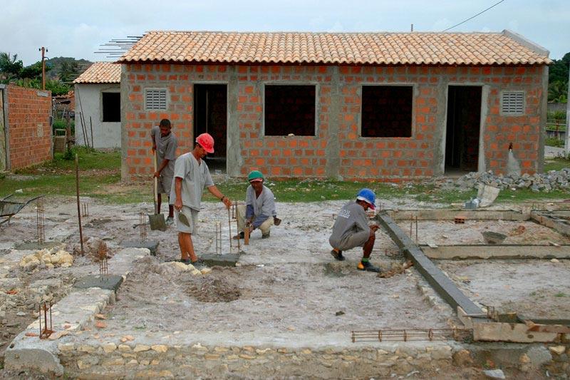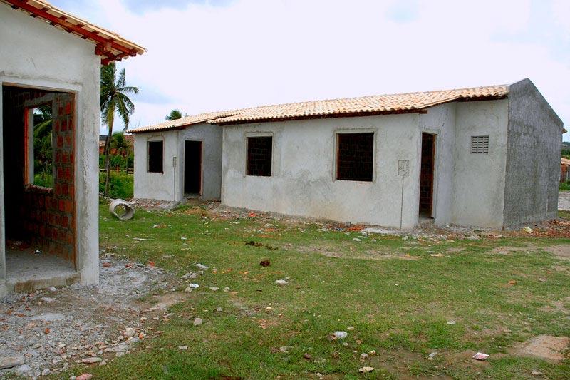 A Prefeitura de Aracaju, em parceria com o Ministério das Cidades, está concluindo a construção de 74 casas dentro do programa Moradia Cidadã, na modalidade Assentamentos Precários, destinadas a famílias de baixa renda. As unidades habitacionais contam com 35 m quadrados de área construída, contendo quarto, sala, cozinha e banheiro, situadas nas chamadas áreas remanescentes da avenida São Paulo, e nas proximidades do canal Comandante Miranda, no Santos Dumont. No total, serão 28 casas na avenida Matadouro e outras 46 ao lado do canal Comandante Miranda. Os recursos são oriundos do Ministério das Cidades e alcançam a cifra de R$ 809.198,93, beneficiando diretamente 74 famílias em situação de risco. De acordo com o mestre de obras José Raimundo Resende, da Sercol Construções, responsável pelas casas da avenida Matadouro, num prazo estimado de um mês serão concluídas aquelas unidades. A chuva nos atrasou um pouco, mas estamos dentro do cronograma previsto, trabalhando de três em três unidades por vez, explicou Resende. Nesse ritmo, a cada 15 dias concluímos três unidades, completou.