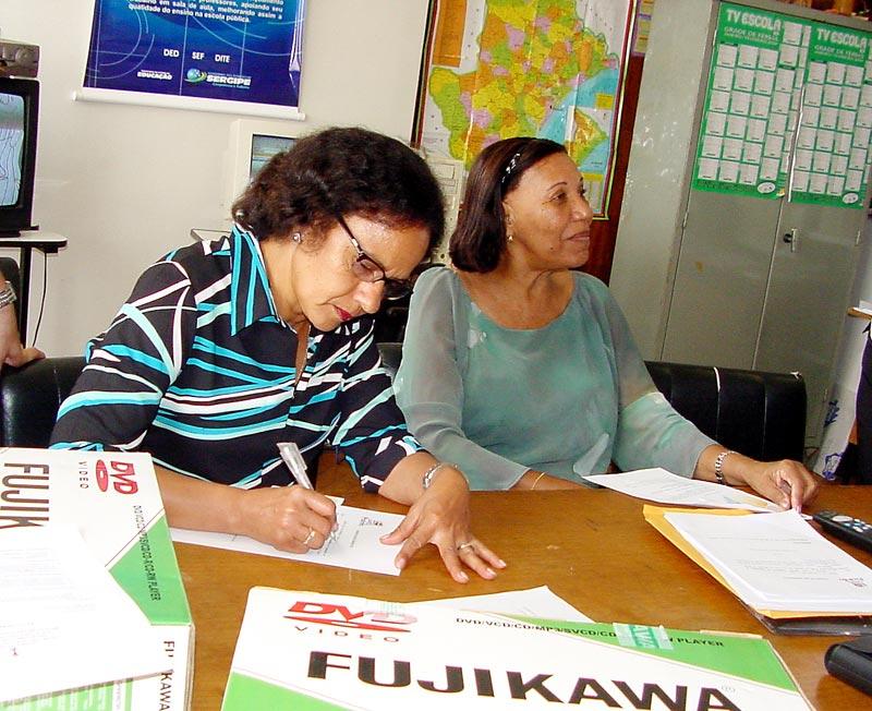 O Ministério da Educação (MEC), através da Secretaria de Educação à Distância (SEAD), repassou na manhã de hoje, 31, kits com aparelhos de DVD para seis escolas do município de Aracaju. A entrega foi feita por meio da Divisão de Tecnologia de Ensino (DITE), órgão do governo do Estado de Sergipe. Segundo a diretora da DITE, Cristina da Costa Fonseca, somente em Aracaju mais 44 kits serão entregues no mês de outubro para as escolas do município. Será o único município, até o momento, que receberá o maior número de kits. A nossa perspectiva é que o professor seja revitalizado na escola e incorpore o uso dos aparelhos no trabalho pedagógico, disse. Satisfeita com a colaboração do MEC, a coordenadora da Escola Municipal de Ensino Infantil Dom José Brandão de Castro, Maria Railda Marques de Matos, recebeu o kit com grande alegria. Essa nova ferramenta irá enriquecer bastante o ensino e a aprendizagem dos nossos alunos, salientou a coordenadora. As escolas beneficiadas hoje com o programa são as seguintes: Creche Selma Bandeira, Centro Comunitário Irmã Caridade da Fonseca Matos, EMEF Sabino Ribeiro, EMEI Dom José Brandão de Castro, EMEF Oscar Nascimento e a EMEF Olga Benário. Após receberem os kits da Coordenadoria do programa TV Escola, todas assinaram um termo de recebimento do material. Dvd a com programas educacionais posteriormente serão enviadas pelo ministério.