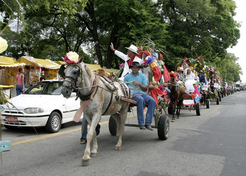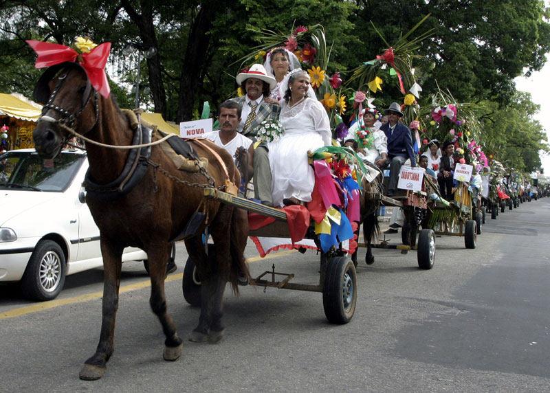 A população parou para aplaudir e observar o cortejo do casamento caipira realizado de forma coletiva para os 23 pares de idosos que integram os Grupos de Convivência, formados por pessoas da terceira idade assistidas pela Secretaria Municipal da Assistência Social e Cidadania (Semasc). Eles desfilaram em carroças, que, animados por sanfoneiros, conduziram os convidados até o Clube do Cotinguiba, percorrendo as principais ruas da capital. Por onde passou o cortejo, os fogos de artifícios anunciaram a presença dos noivos, chamando a atenção de quem estava nas ruas e daqueles que estavam em suas casas. As carroças enfeitadas levavam os idosos que, vestidos de noivos caipiras, distribuíam sorrisos e, atraindo aplausos, animavam a comunidade. A assistente social Margarida Ribeiro, coordenadora do Programa Municipal de Atenção à Pessoa Idosa conduziu o cortejo convidando a população a participar da festa caipira, que culminou com um grande forró no Clube do Cotinguiba. A assistente social Rosária Rabelo, secretária da Semasc, acompanhou todo o cortejo, contribuindo para o brilho da festa. Para a assistente social aposentada Nalde Barbosa, que desfilou em uma das carroças do alto dos seus 78 anos, informou que nem a artrite atrapalhou sua animação. No Cotinguiba, o humor dominou o ambiente com a celebração do casamento coletivo. Os casais disseram “sim” ao padre às pressas para então ariar a fivela num excêntrico forró pé de serra animado por um Trio de Forró, recheada de muita comida típica. Josefina Pereira, 69, e José Francisco Chavier, 75, casal de namorados, que se conheceu no Grupo de Convivência do bairro Veneza, não escondem a emoção por participar da festa. “Vamos brincar e dançar do início ao fim”, declararam, muito animados. Dona Nairene Maria dos Santos, 74, que freqüenta a festa todos os anos, revelou que a festa a faz mais jovem e que este ano está ainda melhor. Seu Ântonio da Silva, que desfilou de noivo, destacou que fazer parte do grupo anima a sua vida e que a festa é maravilhosa. “Se Deus quiser, vou dançar muito” declara animado.