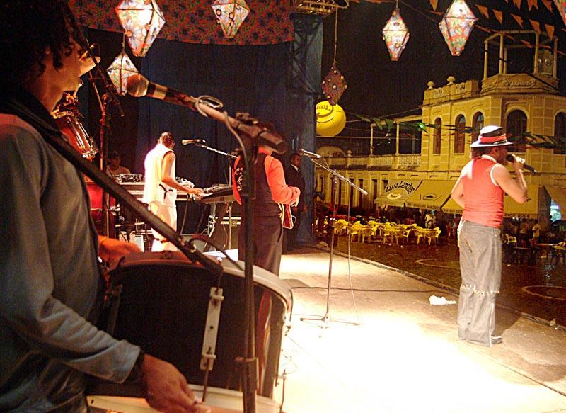 Nem a chuva nem o vento fizeram os casais arredaram o pé da frente do palco Gerson Filho, onde a banda Bentivi e sua passarada toca neste momento. A banda que reúne três gerações de músicos empolga os forrozeiros que estão chegando ao Forró Caju, nesta véspera de São Pedro. Danilo, de 11 anos, e Alison de 9, são os membros mais jovens desta banda que começou com seu Amildo, avô dos garotos, há mais de dez anos. O casal de namorados Cláudio Menezes e Magda Souza que prestigiam a banda desde o início do show, afirma que o som da banda está ótimo, perfeito para se dançar agarradinho. Para Zenilde Oliveira, que veio acompanhada do esposo, esta penúltima noite de Forró Caju promete ser uma das melhores. A banda é tão animada que até eu que não gosto muito de dançar estou me animando, declarou José Antonio Feitosa, esposo de Zenilde. A próxima atração a subir ao palco Gerson Filho esta noite é o cantor Zé Américo do Campo do Brito.