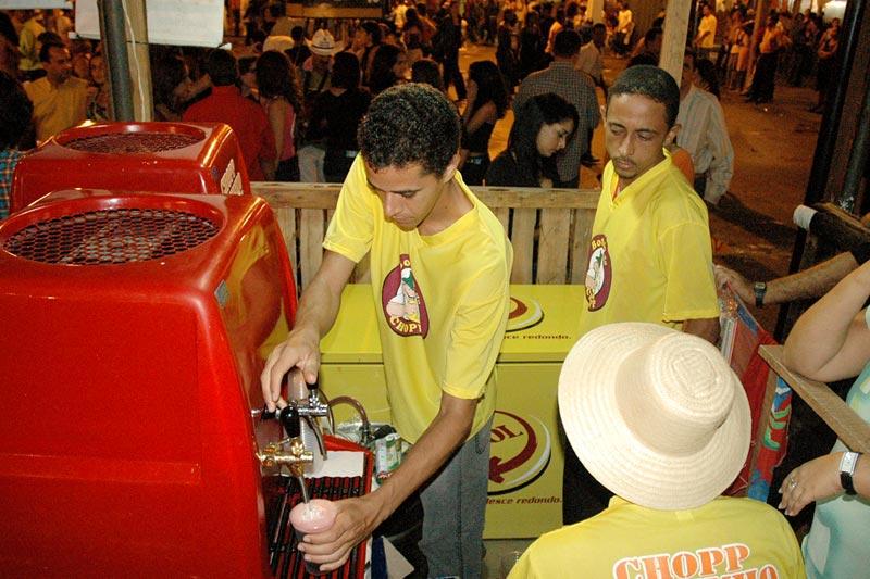 Quem pensar que essa nova bebida é simplesmente uma mistura de chopp com vinho, está enganado. Proveniente da uva e retirada instantaneamente de uma máquina que a torna espumante, gelada e gaseificada, a nova opção de bebida vem sendo uma das mais procuradas durante o Forró Caju 2005. De acordo com a proprietária da concessão da marca no estado, Cláudia Prado, esse ano já foram consumidos 49 barris, enquanto em 2004 a procura não superou a venda de 20 barris. A procura esse ano foi tanta que a produção de Maceió foi desviada para Aracaju, disse Cláudia.