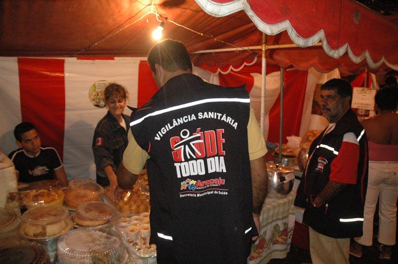 O número de apreensões de alimentos foi reduzido em 90% neste Forró Caju em relação ao ano passado. O resultado positivo foi decorrente de um trabalho de conscientização e campanhas educativas realizadas pela Vigilânia Sanitária Municipal, junto aos vendedores ambulantes, capeteiros e donos de bares. Durante todo o período dos festejos juninos não foram registradas denúncias quanto alimentos estagnados. Os serviços também foram preventivos, envolvendo oito fiscais por noite e equipes de monitoramento. O gerente de alimentos da Vigilância Sanitária da Secretaria Municipal de Saúde, Geraldo José Santana, que trabalha no Forró Caju desde a sua implantação, avaliou os festejos como positivo. “A cada ano a gente sente o melhoramento na qualidade dos produtos comercializados”, comentou, acrescentando que os comerciantes estão mais sensíveis as normas estabelecidas de higiene, manipulação e acondicionamento de alimentos, confirmando o resultado dos cursos e palestras que foram oferecidos para este público-alvo. Geraldo Santana especificou que ano passado, foram apreendidas 300 bisnagas de condimentos (maionese, mostarda e outros). “Considerando que realizamos também um trabalho preventivo, recolhemos 30 bisnagas este ano, sem que tivéssemos maiores problemas”, informou.