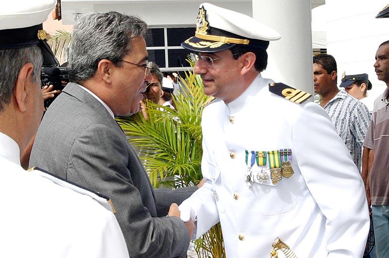 O prefeito de Aracaju, Marcelo Déda, prestigiou na manhã de hoje a posse do novo comandante da Capitania dos Portos de Sergipe, o capitão-de-fragata Mauro José da Rocha de Araújo. Ele assumiu o cargo no lugar do também capitão-de-fragata Mário José de Sousa Alves Júnior, que ocupou a função durante dois anos e agora vai servir na Base Naval de Aratu, em Salvador (BA). Estes são homens que servem com extrema competência à nação brasileira. A prefeitura tem uma relação cordial e de cooperação mútua com a Marinha. O comandante Alves realizou um excelente trabalho e agora desejamos muito sucesso ao comandante Araújo em nome do povo de Aracaju, afirmou o prefeito. O novo capitão dos Portos de Sergipe, o carioca Mauro Araújo, serviu ao Ministério da Defesa em Brasília nos últimos três anos. Tenho consciência do grande desafio que hora se inicia e quero poder colaborar para que a Marinha estreite cada vez mais suas relações com o poder público sergipano, destacou. O comandante do 2° Distrito Naval da Marinha (BA, SE e parte de MG), vice-almirante João Afonso Prado Maia, participou da solenidade. O capitão Alves conduziu de forma segura e eficiente a capitania, avaliou ele, ao tempo em que desejou boas-vindas ao capitão Mauro Araújo. Emocionado, o capitão-de-fragata Mário Alves destacou parcerias com o setor público e privado em 35 municípios sergipanos como algumas de suas principais realizações à frente da Capitania dos Portos de Sergipe. Ele agradeceu especialmente ao prefeito Marcelo Déda e sua equipe e dedicou o sucesso no exercício do cargo à sua família. Dentre outras atividades, a Capitania dos Portos é responsável pela segurança do tráfego aquaviário, pela salva-guarda da vida humana em ambiente marítimo e pela prevenção da poluição hídrica. Participaram da solenidade de posse o governador do Estado, João Alves Filho; o comandante do 28º BC, coronel Fernando Melo; o gerente de negócios da Petrobras, Eugênio Dezen; o diretor da Fafen, Rosildo Silva; o prefeito da Barra dos Coqueiros, Airton Martins; o gerente executivo do Ibama, Márcio Macedo; secretários de Estado; representantes da Polícia Federal, Academia Sergipana de Letras, Força Aérea Brasileira e diversas autoridades.