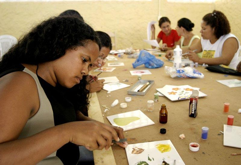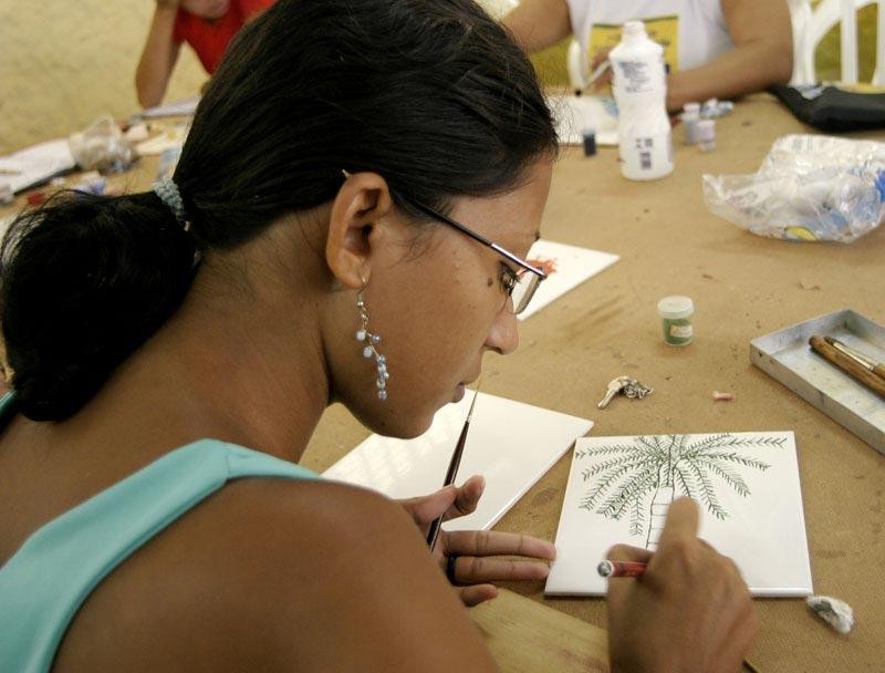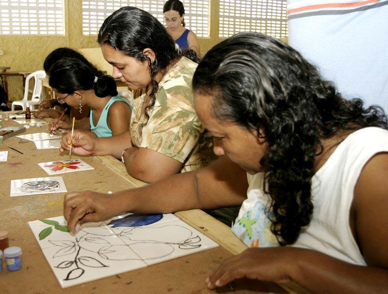 O curso de pintura em azulejo oferecido pela Fundação Municipal do Trabalho (Fundat), para os moradores do bairro Coroa do Meio, já está na etapa de aulas práticas. Realizado na Unidade Produtiva do bairro, o curso tem como objetivo desenvolver nas 16 alunas a capacidade de produzir pinturas artísticas em azulejos, facilitando o caminho para o mercado de trabalho. De acordo com o professor, o artista plástico Vicente Coda, a técnica utilizada é milenar. Esta técnica é antiguíssima e vem obedecendo a tradições. Esta mesma pintura é utilizada em porcelanas. Os estilos vão do clássico ao popular. Nós estamos utilizando os dois, mas o estilo popular contemporâneo tem mais aceitação no mercado, porque o preço é mais acessível e o mercado é praticamente voltado para o popular, explica Vicente. Segundo o professor, o aprendizado levará as alunas a trabalharem com decoração. Mas nada impede que elas desenvolvam as artes plásticas, trabalhando a arte pela arte, frisa. O primeiro ponto para iniciar a prática foi desenvolver a destreza dos alunos para com os desenhos. Sabendo desenhar, elas poderão possuir uma crítica, além da criatividade, claro. E com isso, passarão a pintar também em louças e tecidos domésticos, e tudo isso pode ser uma obra de arte. Os desenhos são à mão livre, as idéias são delas, ressalta o professor. A tinta para a pintura é à base de esmalte em pó, para ser misturada ao óleo de capaíba ou óleo japonês. Logo após a pintura, as peças são levadas ao forno numa temperatura de 750 graus. Bom nível O curso será finalizado em outubro e, segundo Vicente Coda, as alunas estão muito bem. O nível está muito bom. Me surpreendi com elas que no início acharam que seria muito difícil pintar em azulejos. Esta é uma arte cara, o material que é muito caro, está sendo fornecido pela Fundat. Então quero parabenizar a Fundação do Trabalho por esta iniciativa. Conceder uma qualificação desta, onde os cursos são caros, foi uma idéia brilhante. A comunidade é carente e elas não teriam condições de pagar um curso desse, informa Vicente. Eu estou achando o curso excelente. O professor e as meninas são muito legais. Nunca pensei que um dia iria estudar a área artística de pintura. Além do lado profissional, esta técnica é uma terapia. Se eu tiver oportunidades para trabalhar será ótimo, mas também se não tiver, terei algo para distrair a minha mente, diz a aluna Rosa Maria Paixão, 33 anos. Já para Shisly Lima de Santana Ferreira, 40 anos, a pintura em azulejo será mais uma atividade que ela fará em casa. Já fiz os cursos de bijuterias e biscuit e estou ganhando dinheiro com isso. Tenho várias encomendas de bijuterias, por isso trabalho em casa. Agora com este, estarei qualificada em mais uma coisa. Eu gosto muito de desenhar e de artesanatos e sei que venderei bastante peças, mas primeiro quero produzir uma bem bonita para colocar em minha casa, declara Shisly Lima. De acordo com o instrutor Vicente Coda, após o curso as portas do mercado de trabalho estarão abertas para as alunas No futuro, este grupo poderá trabalhar também sob encomenda, ministrando cursos, no acabamento de azulejos, produção de painéis em azulejos, decoração em louças, fornecer o trabalho para lojas e fábricas, participar de feiras de artesanatos. São várias as opções, garante Vicente, lembrando que o mesmo curso de pintura em azulejo também está sendo ofertado pela Fundat para a comunidade do bairro Industrial, com aulas na sede do Sinditextil.