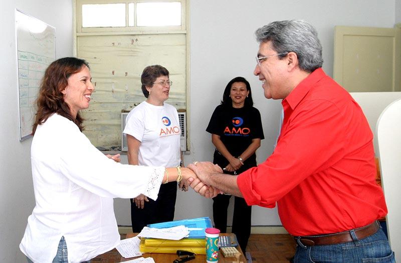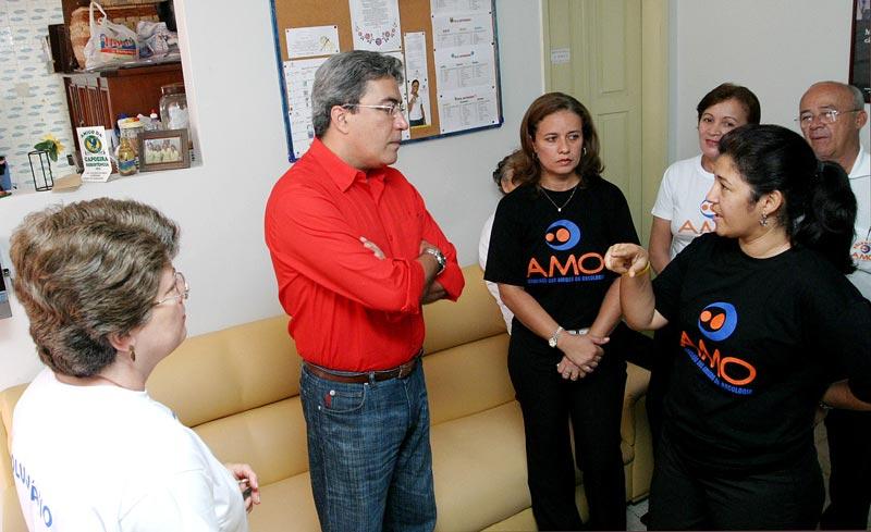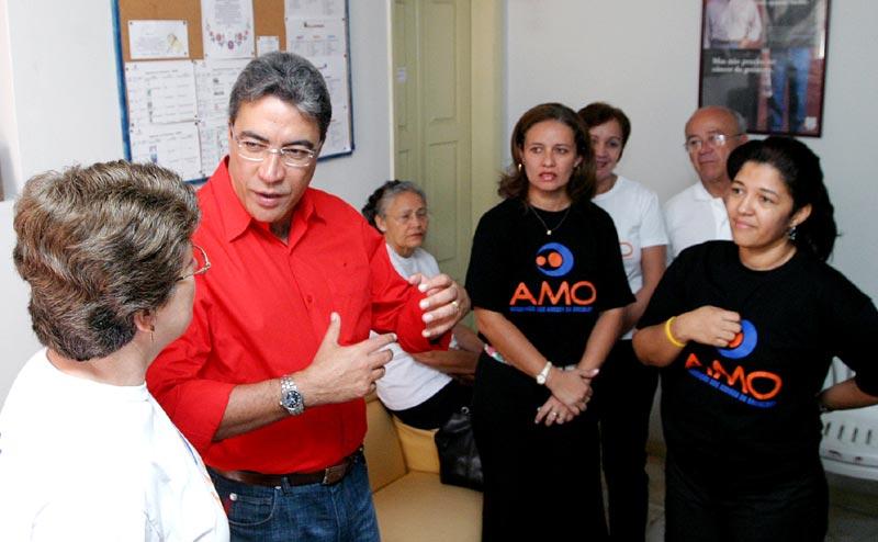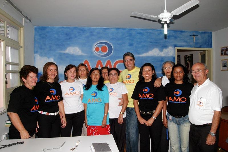 O prefeito de Aracaju, Marcelo Déda, visitou na manhã de hoje a sede da Associação de Amigos da Oncologia (AMO), no bairro Cirurgia. Além de conhecer melhor o trabalho realizado para 356 portadores de câncer cadastrados, ele posou para as fotos que serão utilizadas na gincana da Associação para divulgar suas ações. Eu fiquei positivamente impressionado com o trabalho dos voluntários da AMO. É um trabalho extraordinário e muito difícil porque envolve uma dedicação enorme, o que revela o gigantesco amor das pessoas que integram este projeto pelos seus semelhantes, disse o prefeito Marcelo Déda. Atualmente, 20 funcionários e 80 voluntários prestam sua solidariedade aos pacientes portadores de câncer do Hospital Cirurgia e também de outros locais. Eles visitam os pacientes em suas residências e nos hospitais e oferecem toda a atenção de que eles necessitam. O abrigo da instituição oferece alimentação, dormitório, assistência social e psicológica a 18 pessoas de outros municípios e até de outros estados. Eu fiquei muito emocionado e quero parabenizar todos os homens e mulheres que são voluntários ou doadores da AMO, porque quando a gente visita e conhece a instituição, passa a aumentar nossa fé na espécie humana, falou o prefeito. Há solução para a humanidade desde que os instrumentos sejam o amor e doação ao próximo, acrescentou. A AMO existe há quase nove anos. Além de uma casa cedida, a instituição dispõe de uma casa de aluguel. Mais um imóvel está sendo alugado, o que vai possibilitar o aumento do número de pessoas que recebem tratamento integral 36. Aqui é melhor do que na minha casa. Lugar melhor do que esse não tem, disse uma das pacientes. A presidente da associação, Maria Conceição Balbino, agradeceu ao prefeito pela visita e o convidou a voltar mais vezes. Ao final do encontro, Marcelo Déda colocou-se à disposição da AMO enquanto prefeito pra ajudar no que for possível. Um trabalho como esse, que vai além da assistência material para dar sobretudo amor e a compreensão, merece todo nosso apoio, finalizou o prefeito.
