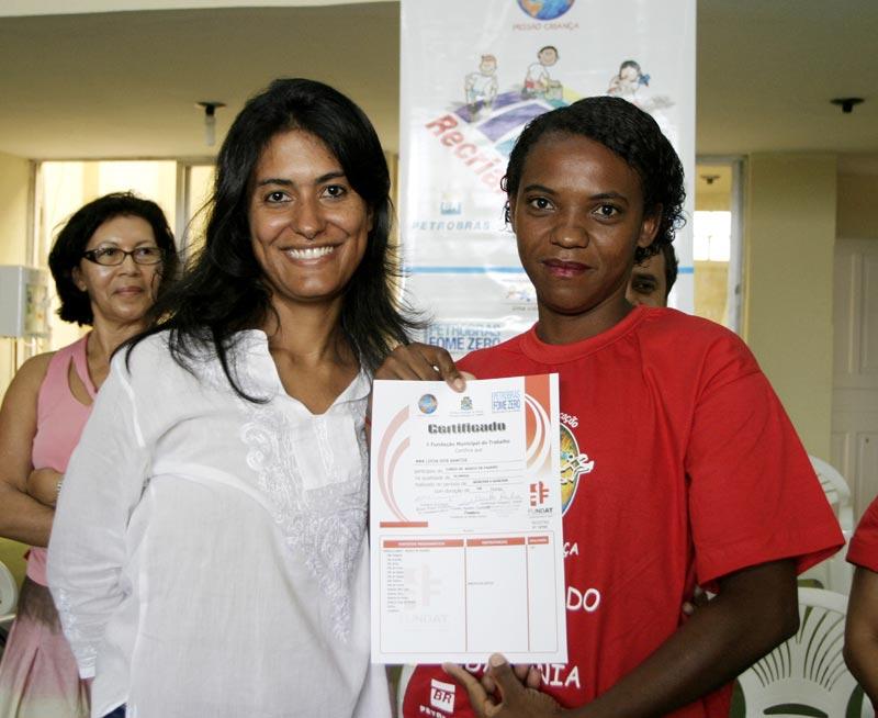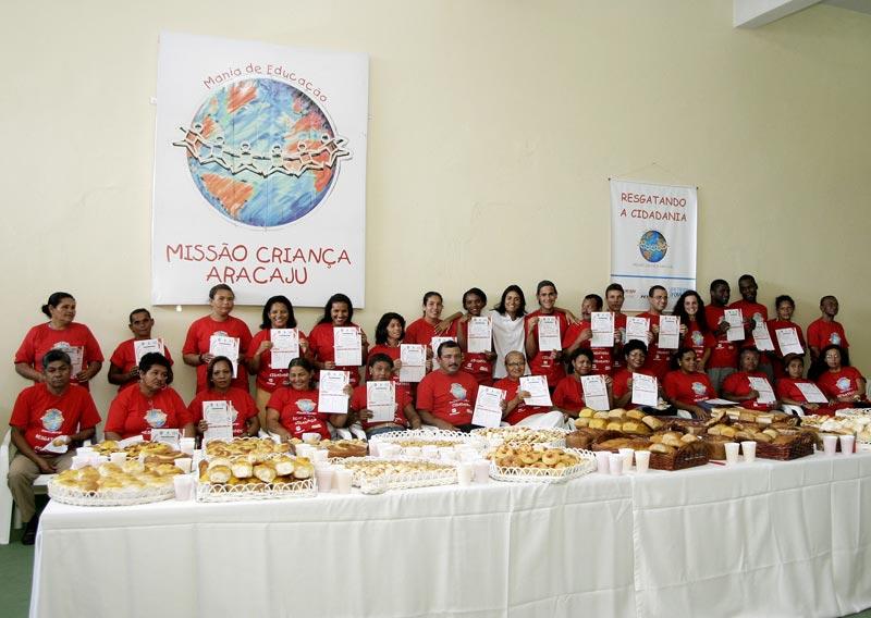 Muita alegria, emoção e esperança. Assim foi marcada a manhã de hoje para os 28 alunos que integram o projeto social Resgatando a Cidadania, e que participaram do curso de padeiro profissional, executado através de uma parceria entre a Ong Missão Criança e a Prefeitura de Aracaju com recursos disponibilizados pela Petrobras. O curso teve apoio ainda da Fundação Municipal do Trabalho (Fundat), que disponibilizou a Padaria Escola para as aulas e contou com a parceria da empresa Sarandi, que forneceu a farinha de trigo para as aulas práticas. No total, foram 100horas/aulas, divididas em três dias da semana, quando os alunos tiveram a oportunidade de aprender a fazer os produtos de forma profissional. Hoje é um dia de muita alegria, pois estamos reunidos para comemorar uma grande conquista. E essa conquista é de todos nós. Todos estão de parabéns e espero que vocês continuem buscando sempre mais, destacou a presidente da Ong Missão Criança, Eliane Aquino. Esses produtos aqui expostos representam apenas uma mostra do que vocês são capazes de fazer. Independente de conseguirem emprego ou não, estão aptos a produzir em casa e vender seus produtos na própria comunidade. E não se esqueçam que a Missão Criança sempre estará aqui, pronta para ajudar a todos, enfatizou Eliane Aquino. Para a formanda Gilvânia Reis dos Santos, participar do curso de padeiro lhe permitiu aprender uma profissão. Não vim aqui hoje apenas para receber um diploma, mas também para pegar minha carta de emprego. Estou muito feliz e agradeço a oportunidade, porque agora tenho uma profissão, revelou emocionada. Outra aluna muito satisfeita com o que aprendeu é Sônia Santos de Almeida. Estou muito contente porque tenho certeza que estou capacitada para atuar no mercado de trabalho. E não quero parar por aqui, sempre que tiver a oportunidade quero fazer outros cursos para aprender ainda mais. Muito obrigado a todos vocês por essa grandiosa oportunidade. Os futuros padeiros, além de receberem os diplomas e apostilas contendo as mais variadas receitas, tiveram também uma grande surpresa. Hoje vocês acabaram de plantar uma semente e para a planta nascer e se desenvolver só dependerá de vocês. E para ajudar a primeira produção de vocês, o Moinho Sergipe juntamente com a Sarandi irá doar a cada um, 10kg de farinha de trigo, informou Idaí Montely Reis, diretor comercial do Moinho Sergipe. A cerimônia de formatura aconteceu na sede da Missão Criança, localizada na avenida Coelho e Campos, próximo ao mercado municipal, e contou ainda com a presença de Marcelo Barreto, diretor operacional da Fundat, além dos professores do curso e demais funcionários da Ong Missão Criança. Ao final da solenidade todos se deliciaram com produtos feitos pelos alunos.