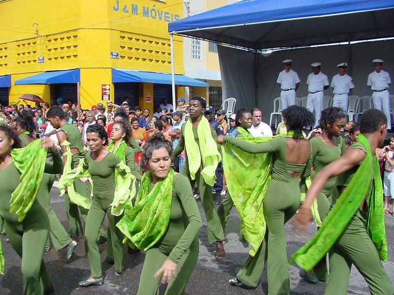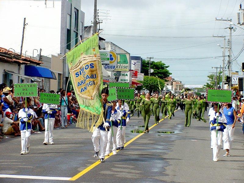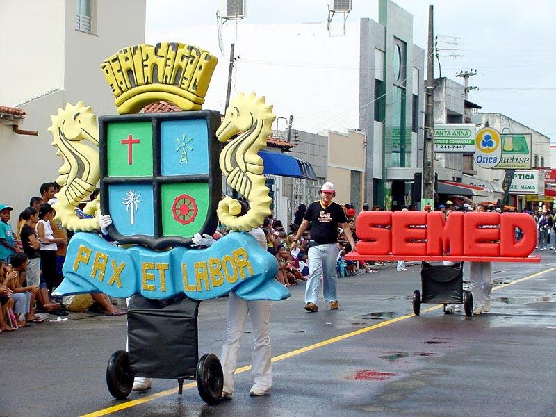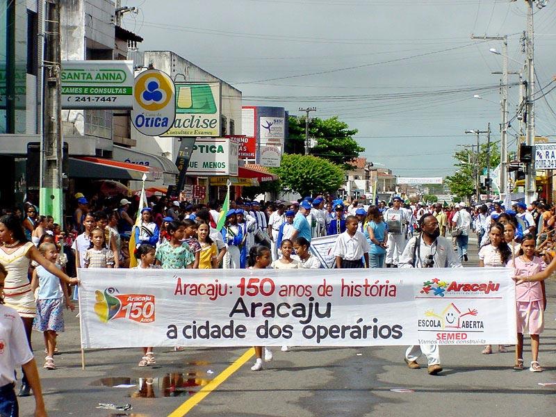 As primeiras escolas a participar do desfile cívico estudantil 2005, realizado hoje pela manhã na rua Bahia, bairro Siqueira Campos, emocionaram o público presente com a beleza das fardas, a música e a alegria dos integrantes de cada pelotão. Com o tema Aracaju: 150 anos de história, em homenagem ao sesquicentenário da capital, o desfile teve um início diferente, marcado pelas representações dos fatos inerentes à cidade. Após os desfiles militar e civil, o desfile estudantil teve abertura com a Escola Municipal Presidente Vargas, que trouxe 170 componentes, entre crianças e adolescentes, incluindo a tradicional banda. A escola, que tem uma tradição de fazer o encerramento do desfile todos os anos, desde o ano passado é convidada também para fazer a abertura. Parece que gostaram da nossa banda, porque a escola foi chamada para voltar no final do desfile com um coral cantando o hino dos 150 anos da capital e o famoso Parabéns pra você, disse a coordenadora pedagógica da Presidente Vargas, Cassilda Campos. A apresentação do desfile das escolas municipais foi dividida em 11 sub-temas, a seguir: Aracaju torna-se capital do Estado; Aracaju, a cidade dos operários; Aracaju, cidade do Saber; Aracaju, centro intelectual do Estado; Aracaju, encontro de religiões; Aracaju: passos na modernidade urbana; Aracaju e seus bairros; Aracaju, centro político do Estado; Aracaju, espaço de entretenimento; Aracaju, 150 anos de Carnaval e de Festa Junina; Parabéns a Aracaju de ontem, de hoje, de todos. Antes das escolas, um grupo de atores abriu o desfile, representando personalidades como João Bebe Água, Chica Chaves, Ignácio Barbosa, Basílio Pirro, Getúlio Vargas, Francisco José Alves e outros. Logo em seguida, foi a vez da apresentação de uma coreografia com bailarinos representando a marca do sesquicentenário de Aracaju. Público Uma chuvinha fina refrescou o público que esteve acompanhando com entusiasmo todo o desfile nesta manhã de domingo. Entre fardas coloridas e instrumentos musicais, os estudantes encantavam as pessoas que acordaram cedo para prestigiar a dedicação ao civismo. Dona Eliete Santana, que mora nas imediações, assiste todos os anos. Com 81 anos, ela esbanjou alegria e disposição. Gosto de ver o desfile desde o primeiro realizado na rua Bahia, disse Eliete. Adultos e crianças estiveram empolgados com o desfile, como a pequena Rafaela, 10 anos, que esperava com ansiedade algumas escolas. Estou gostando do desfile. Já vim outras vezes, disse Rafaela, que chegou acompanhada de uma tia e mais duas primas. Assim como ela, o operador de áudio, João Pereira dos Santos, 52, também apreciou o desfile, garantindo que está presente todos os anos.
