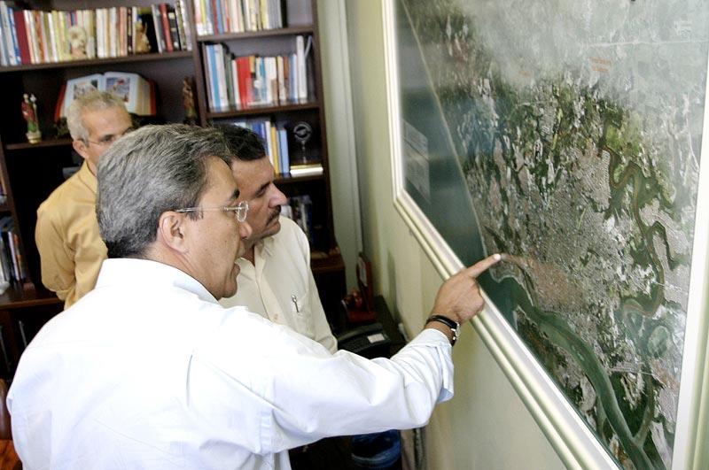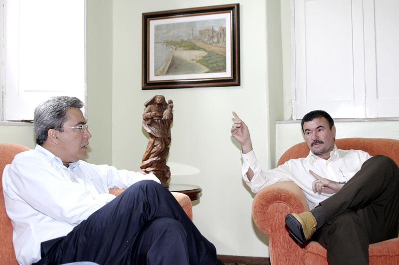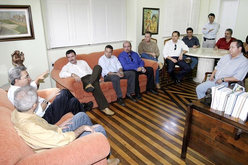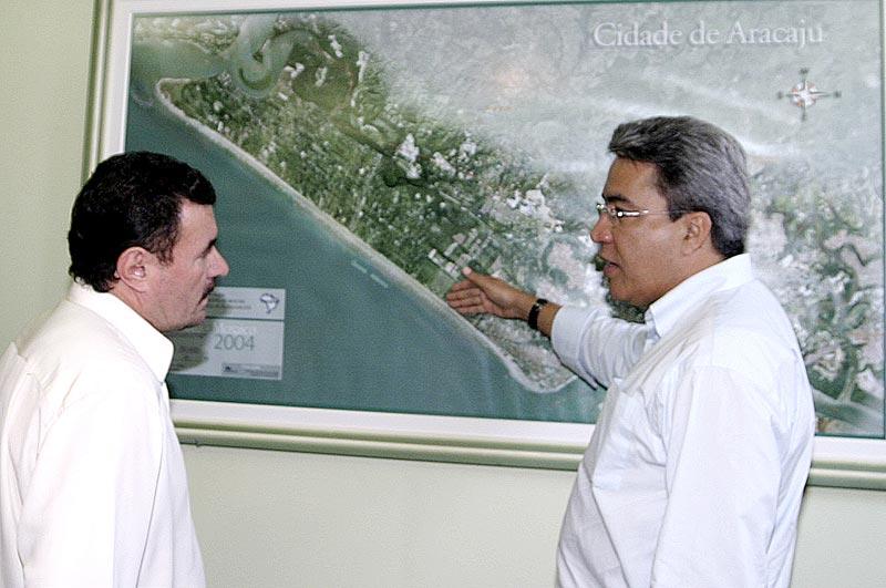 O prefeito de Aracaju, Marcelo Déda, recebeu em seu gabinete no início da tarde de hoje a visita do prefeito de Maceió (AL), José Cícero Soares de Almeida. Acompanhado do vice-prefeito da capital sergipana Edvaldo Nogueira, Déda contou um pouco de sua experiência administrativa e conversou com Cícero Soares, prefeito pela primeira vez, a respeito dos problemas enfrentados numa prefeitura municipal. Além de comentar os excelentes resultados alcançados pelas duas administrações na pesquisa do Instituto IstoÉ/Databrain, que classificou a gestão do prefeito Marcelo Déda em 2° lugar na aprovação popular (7,73 de nota média) e em 4° lugar a de Cícero Almeida (7,5), os prefeitos falaram sobre o desenvolvimento das duas capitais. Estive em Aracaju em 1989 e estou voltando agora. É claro que a cidade está muito diferente, mas eu já visitei muitos locais hoje e vi de perto o cuidado que a administração de Marcelo Déda gerencia a cidade, afirmou o prefeito de Maceió, para quem os resultados da pesquisa divulgada pela revista IstoÉ são incentivos para aperfeiçoar cada vez mais o trabalho. Segundo o prefeito Marcelo Déda, os primeiros momentos à frente da prefeitura costumam ser os mais angustiantes. Mas a população sabe reconhecer um bom trabalho. Em cidades de litoral organizado como a nossa não há dúvida de que devemos começar pela periferia. Do ponto de vista da realização concreta, o executivo nos dá resultados que não podem se comparar aos alcançados no legislativo, afirmou ele para em seguida mostrar a ortofoto de Aracaju ao prefeito de Maceió. Nos primeiros meses da gestão de Marcelo Déda, a Prefeitura de Aracaju investiu em manutenção dos espaços públicos, limpeza pública e transporte, para depois iniciar as grandes obras estruturantes. A municipalização plena da saúde e a implantação do Serviço de Atendimento Móvel de Urgência (Samu) também foram destacadas pelo prefeito da capital sergipana. Os secretários municipais de Maceió Ivan Villela (Transporte), Paulo Gondim (chefe de Gabinete), João Vilela dos Santos (Infra-Estrutura) e João Marcelo Firmino (Comunicação), além dos secretários municipais de Aracaju Oliveira Júnior (chefe de Gabinete), Sérgio Ferrari (Obras e Urbanização), Bosco Mendonça (SMTT) e Eloísa Galdino (Comunicação em exercício) também participaram do encontro. Ao final da visita, o prefeito de Maceió foi presenteado pelo prefeito Marcelo Déda com uma medalha de prata comemorativa dos 150 anos de Aracaju, cunhada especialmente pela Casa da Moeda do Brasil para celebrar a data. Cícero Almeida recebeu ainda um kit com mapa, publicações e CDs com dados estatísticos de Aracaju preparados pela Secretaria Municipal de Planejamento (Seplan) e pela população durante o Congresso da Cidade. Em seguida todos seguiram para um almoço de trabalho.