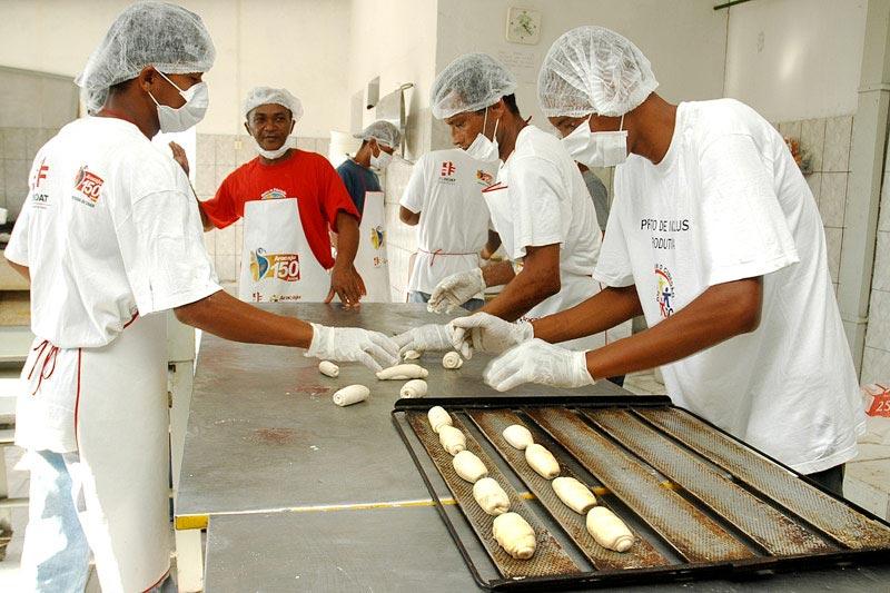 Na última semana do curso de padeiro os jovens participantes ao revisarem os conhecimentos adquiridos também alimentam a vontade de em breve ter uma profissão na qual poderão trabalhar. Essa é a expectativa alimentada pelos 40 alunos que participam do curso profissionalizante oferecido pela prefeitura, através de uma parceria entre a Secretaria Municipal de Assistência Social e Cidadania (Semasc) e a Fundação Municipal do Trabalho (Fundat). No próximo dia 10 eles concluirão o treinamento, que acontece na padaria escola da Fundat no bairro Suissa, com duração de 120 horas. Dessas, 10 horas foram dedicadas às relações interpessoais, 10 horas para a higiene e manipulação de alimentos e as 100 horas restantes para as aulas práticas. Segundo o instrutor Marcos dos Santos foram passadas noções básicas de padaria. Eles tiveram um conhecimento dos equipamentos, do processo de fabricação de pães e receitas e atualmente estão num período de revisão de tudo o que foi aprendido inicialmente, informou. De acordo com o instrutor alguns alunos do curso já conseguiram se empregar na área e os empresários do ramo já procuram na escola mão-de-obra qualificada. Fato que faz aumentar a esperança do aluno Odailton Oliveira Reis, 17 anos, de conseguir o mesmo. Eu achei o curso ótimo, porque aqui pelo menos estou aprendendo alguma coisa e creio que quando terminar vou trabalhar e me tornar um profissional, contou, acrescentando que também vai voltar a estudar. Os planos de Fernando Martins, 18 anos e ex-flanelinha, são parecidos. Eu quero trabalhar e se tiver uma oportunidade vou seguir nessa profissão, disse. De acordo com o instrutor Marcos dos Santos durante todo o curso os alunos mostraram bastante interesse e dedicação. Todos querem uma profissão e a maioria não tem opção de trabalho. Com esse curso, além de preparados para o mercado de trabalho eles também estarão aptos para trabalhar em casa.