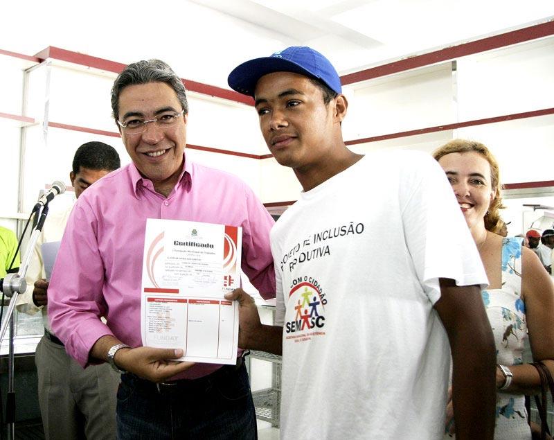 Depois de passar dois anos e meio como flanelinha na avenida Desembargador Maynard, Cristiano Soares disse que finalmente encontrou uma profissão. Junto com mais 37 jovens cadastrados pela Secretaria Municipal de Assistência Social e Cidadania, ele recebeu esta manhã das mãos do prefeito de Aracaju, Marcelo Déda, seu certificado de padeiro profissional. O título foi conquistado após cinco semanas de aula na padaria-escola da Fundação Municipal do Trabalho (Fundat). Cristiano tem 26 anos, é casado e tem uma filha de três anos. “Eu não quero mais voltar para a rua. Eu moro de aluguel e sem uma profissão era muito difícil conseguir pagar as contas em dia”, explicou. “Vou batalhar agora para conseguir um emprego e vou continuar com meus colegas aqui no curso de confeiteiro”, disse ele. Esta foi a 19ª turma formada pela padaria-escola desde setembro de 2002, quando foi inaugurada no bairro Suíssa. Até o momento, 220 alunos já concluíram seus cursos. “Vivemos em tempos em que as oportunidades de empregos são difíceis, mesmo com a média de 120 mil empregos gerados por mês no governo do presidente Lula. Mas temos que estar sempre preparados para os desafios da vida e esta é uma área de formação em que sempre há oportunidades”, falou o prefeito Marcelo Déda. De acordo com ele, apesar do governo do Estado não repassar há quase três anos os recursos enviados pelo Governo Federal através do Fundo de Amparo ao Trabalhador (FAT) para que a prefeitura invista em qualificação profissional, a administração municipal não cruzou os braços. “Poderíamos ter parado esse trabalho por falta de recurso, mas optamos por enfrentar a questão com seriedade e aí está o resultado”, acrescentou. Além de tirar os jovens da situação de risco em que viviam na rua, o trabalho da Prefeitura de Aracaju os reinsere no convívio social e familiar. “Eu considero que os meninos eram pedras brutas que agora estão lapidadas. A oportunidade de trabalhar faz com que eles tenham outro olhar sobre a vida e se sintam estimulados a reconstruir sua trajetória longe das ruas”, avaliou a secretária de Assistência Social e Cidadania, Rosária Rabelo. Para o presidente da Fundat, Edson Caetano, a prefeitura mostra mais uma vez sua preocupação em criar programas integrados para atender às demandas da juventude aracajuana e inclusive reduzir de forma eficaz a criminalidade. “Estamos aos poucos minimizando a exclusão e dando condições de vida digna a essa garotada”, afirmou. Os secretários Oliveira Júnior (chefe de gabinete do prefeito) e Lúcia Falcón (Planejamento), a delegada regional do Trabalho, Lourdes Correia, além de servidores municipais participaram da entrega de certificados, que terminou com um café da manhã preparado com os pães feitos pelos novos padeiros.